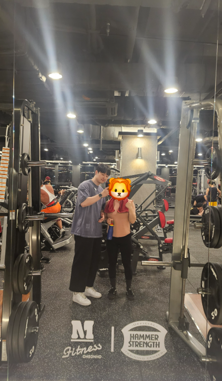 제 수업도 연장했고, 제 남편도, 엄마도 화랑쌤께 PT등록했을 정도면 말 다했죠? >_<휘트니스엠 천호점에서의 운동 경험은 매우 만족스럽습니다. 새로 리뉴얼된 헬스장 환경은 깔끔하고 쾌적하여 운동할 때 큰 동기부여가 됩니다. 최신 기구들이 다양하게 갖추어져 있어 처음엔 낯설었지만, 친절한 매니저님과 화랑쌤의 세심한 지도 덕분에 빠르게 적응할 수 있었습니다.
