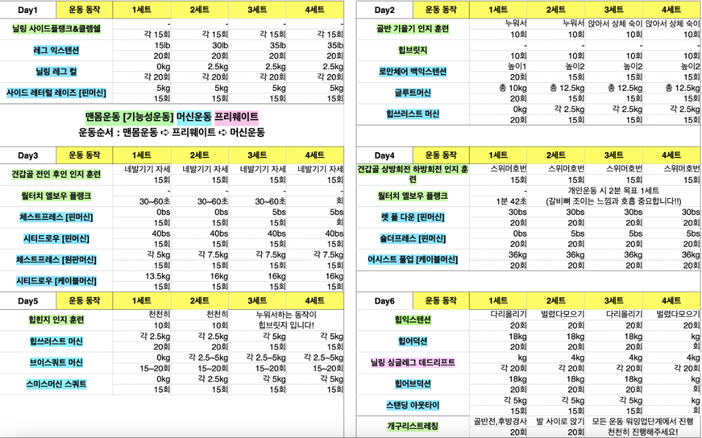 시간이었고, 혼자서도 운동할 수 있도록 꼼꼼하게