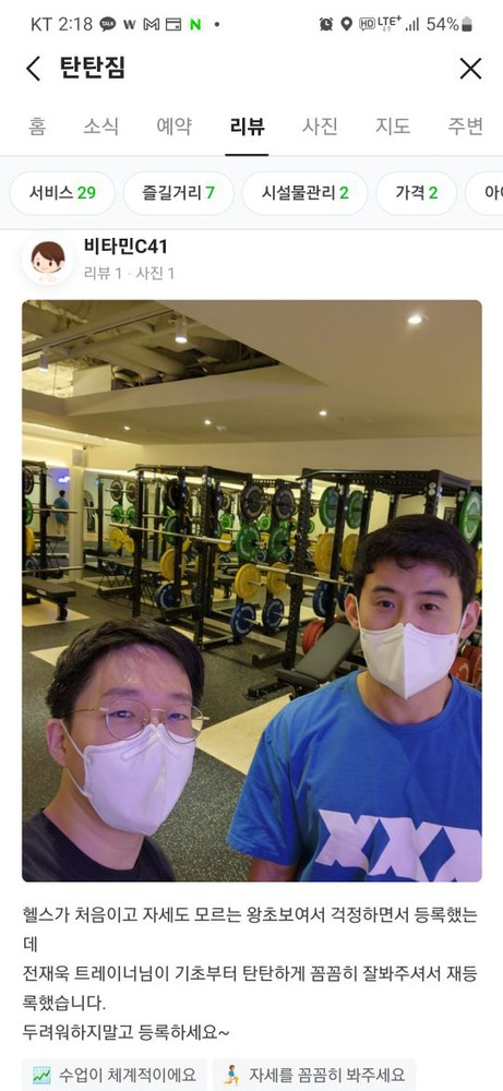 코치님이 너무 친절하시고 운동할때 자세도 꼼꼼히 봐주셔서 정말 추천드립니다! 어느 부분이 안좋은지 아시고 개인에게 딱 맞는 운동을 도와주셔서 건강한 습관 만들도록 계속해서 노력하겠습니다~ 피티 고민중이시면 정말 강추드립니다!!