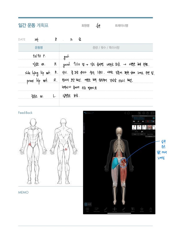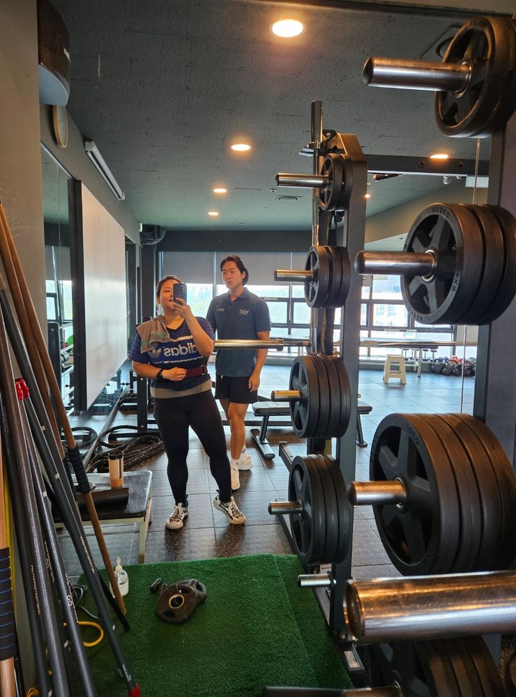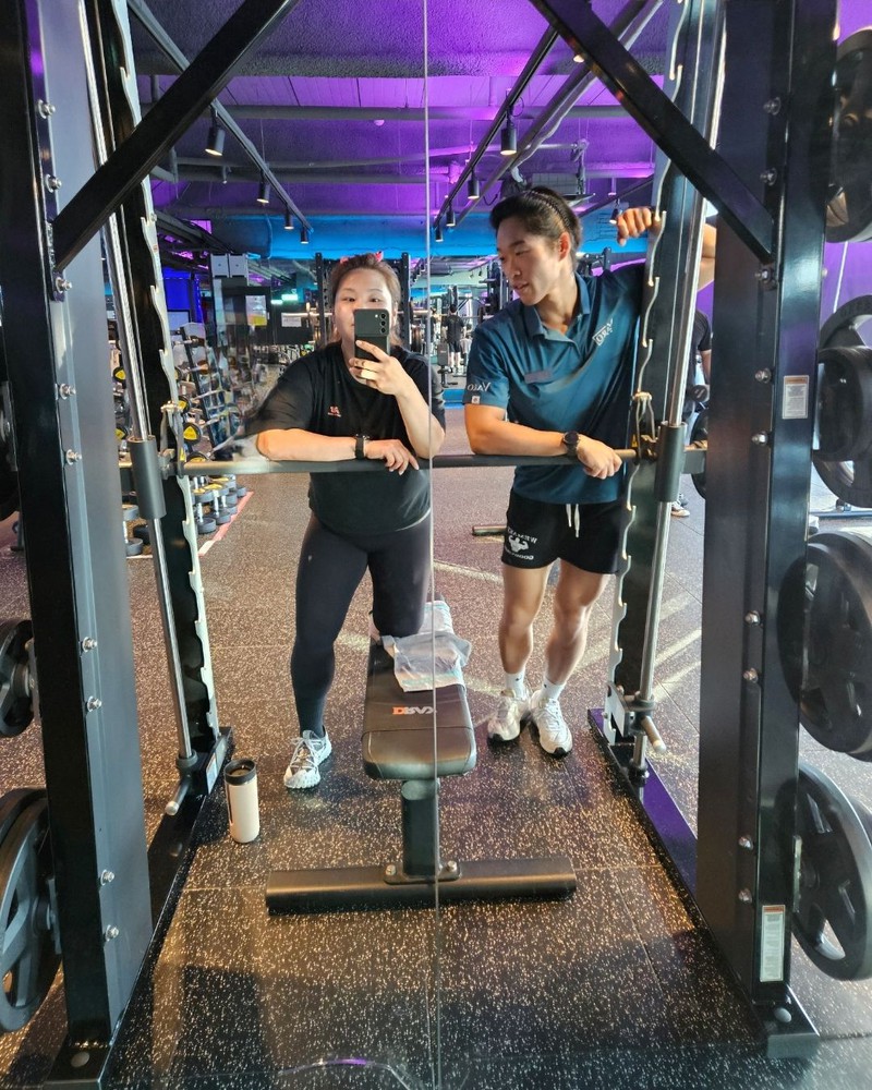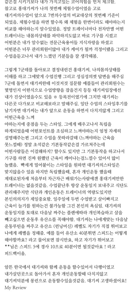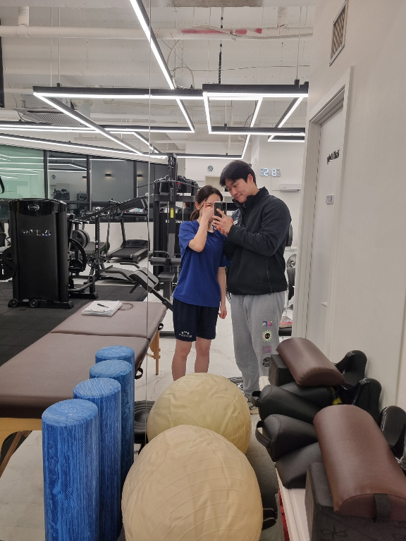 처음 운동했을 때 골반 빠짐, 무릎 통증, 발목 불안정으로 한다리 지지도 어려웠던 걸로 기억하는데 수업 초반에 금방 잡혀서 다행이었어요 ㅜㅜ 전부 제 수업 방식을 믿어주시고 계속 연습해주신 덕분이에요 😁 심지어 몸도 기본적으로 잘 사용하셔서 불편한 것들 잡고나서는 정말 빠르게 운동 강도 낼 수 있어서 짧은 시간에 여러가지 많이 알려드릴 수 있던 것 같아요 ㅎㅎ
