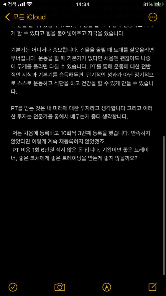 PT 비용 1회 6만원 적지 않은 돈 입니다. 기왕이면 좋은 트레이너, 좋은 코치에게 좋은 트레이닝을 받는게 좋지 않을까요?