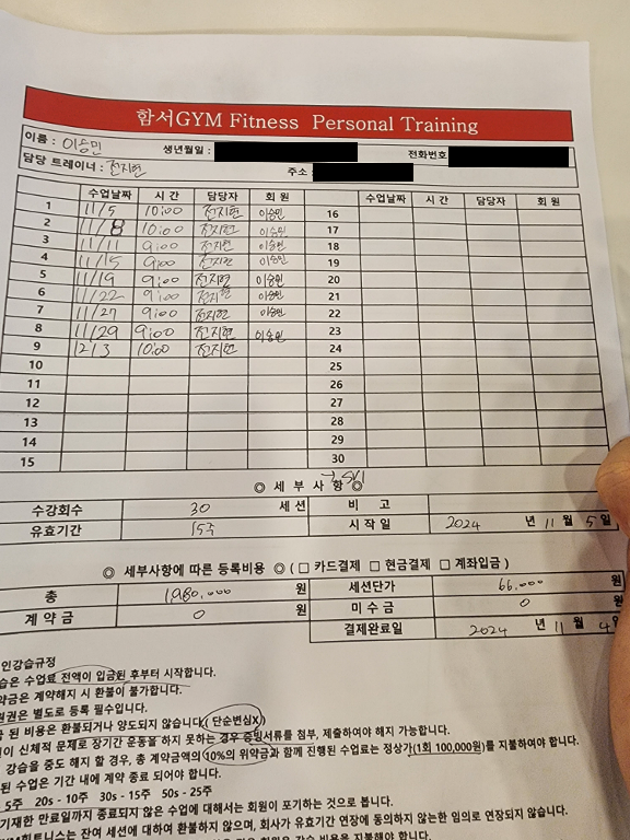 운동 자세나 스케쥴을 본인 일처럼 친절하고 자세하게 잡아주십니다 감사합니다~