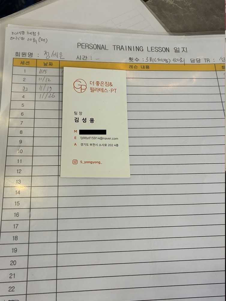 친구 소개로 선생님 블로그랑 인스타 보면서 동기부여받아서 pt등록 했습니다.