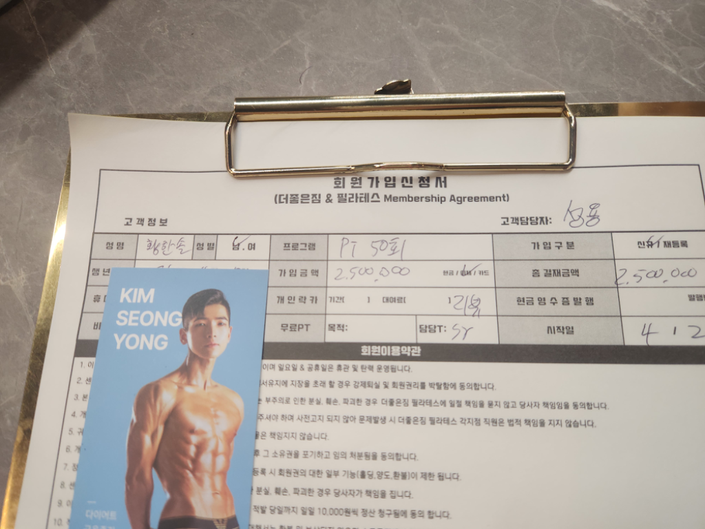 pt 상담받으러 가서 김성용 트레이너님이랑 상담을 했습니다.