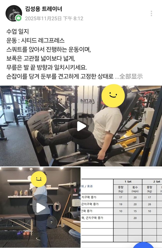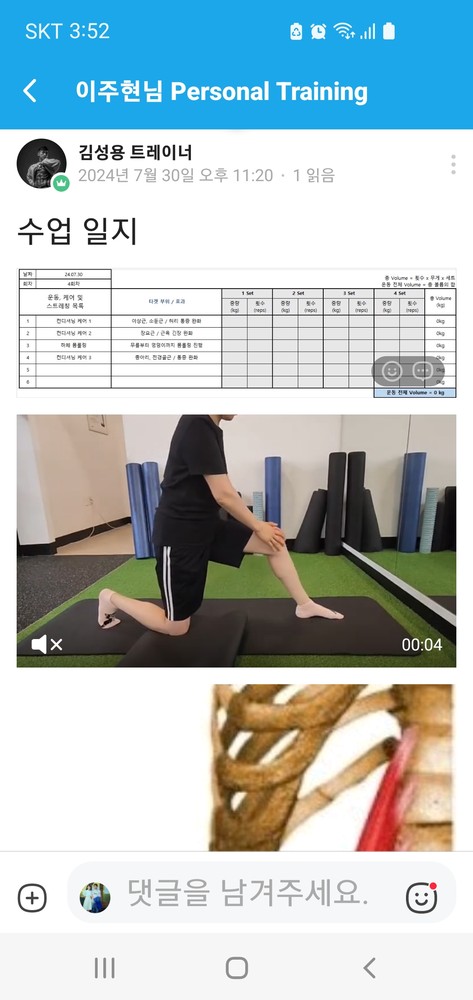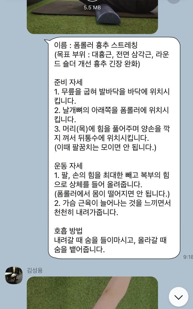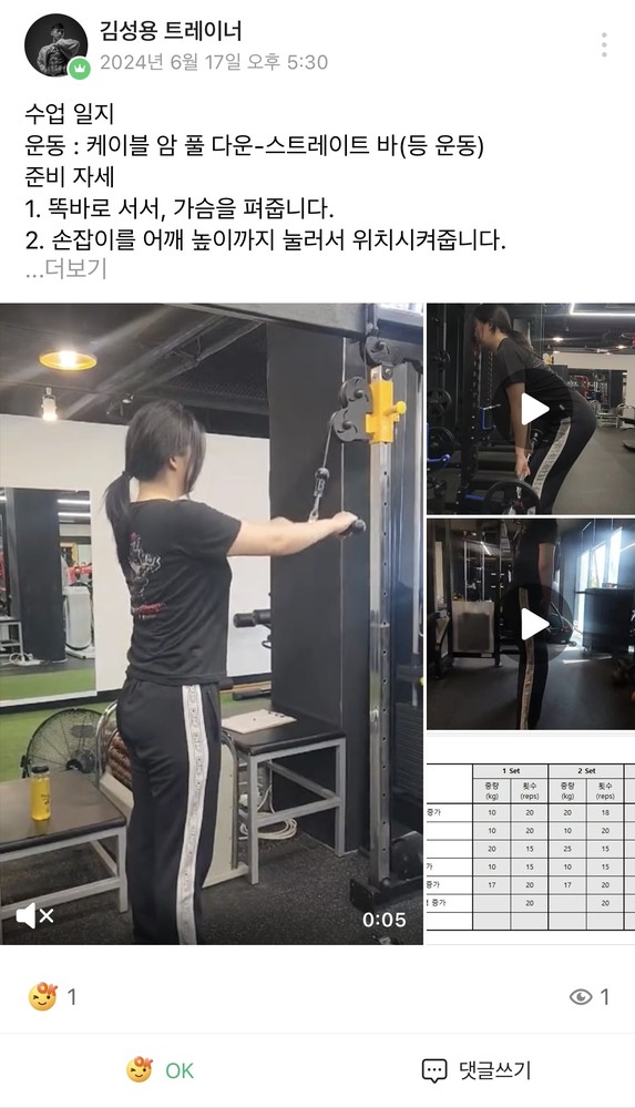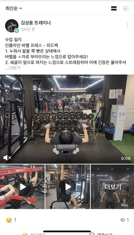 그리고 영상으로 매번 보내주시고 글도 남겨주시니까 개인운동할때 정말 많이 도움되더라고요 !!