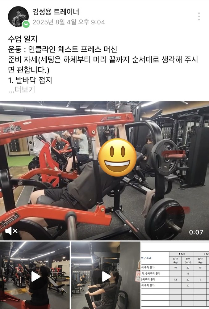 무엇보다 제 운동 목적에 맞춰 세심하게 프로그램을 짜주시고, 단순히 ‘어떻게’ 하는지만이 아니라 작용 원리까지 쉽게 알려주셔서 정말 좋았습니다. 또 수업 후에는 그날 운동 내용을 밴드에 꼼꼼히 정리해주셔서 혼자 운동할 때도 참고하기 너무 편해요👍