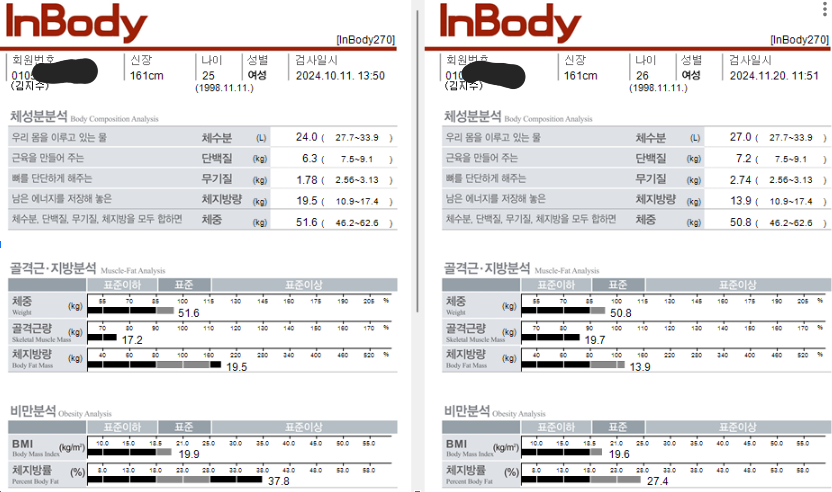 다이어트하면서 체중은 떨어졌고 근육량은 유지되었습니다!