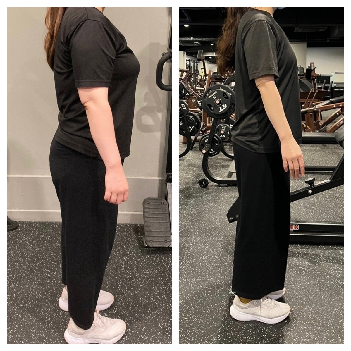 처음 운동하기전 사진에서 보이듯이 왼쪽어깨의 하강이 두드러졌지만 현재 1년가까이 운동후 양어깨가 비슷한 위치로 유지되고 있으며 허리쪽 통증도 거의 사라졌습니다.