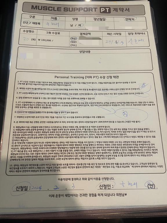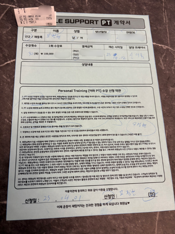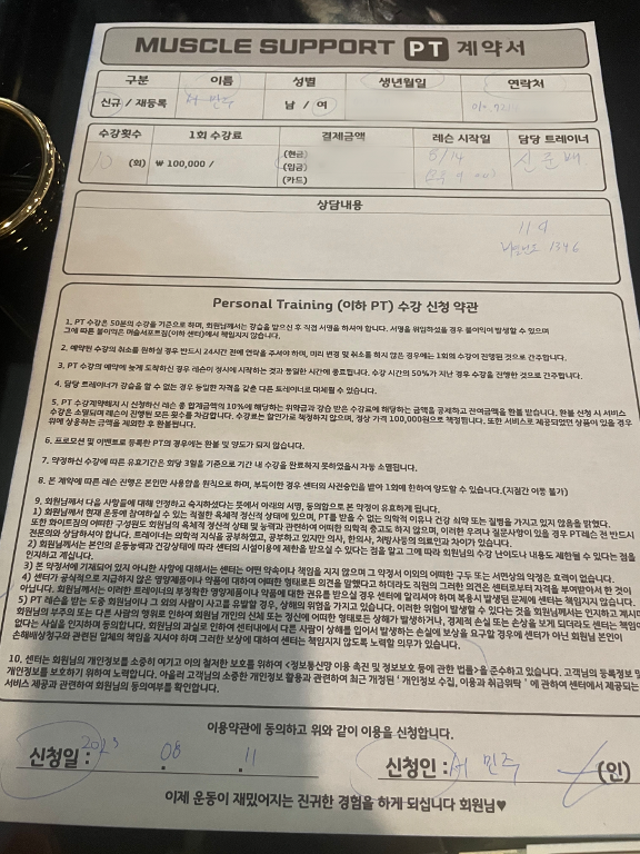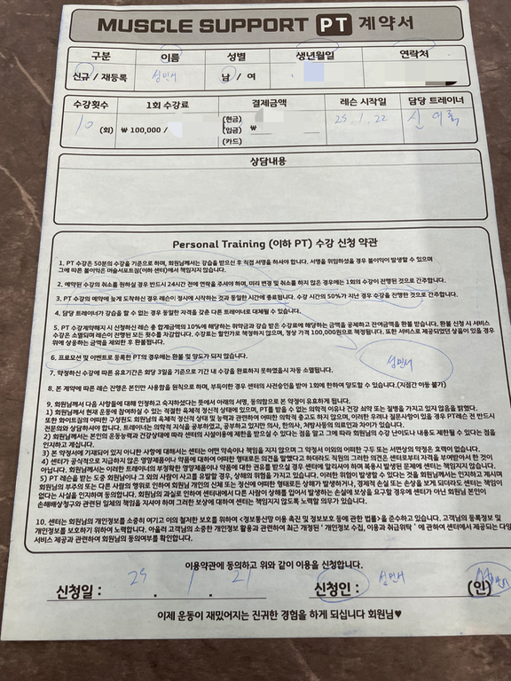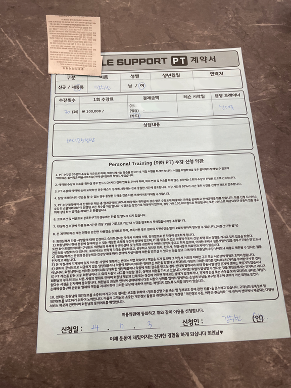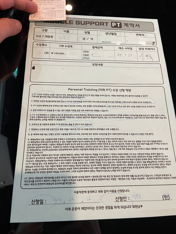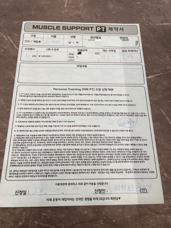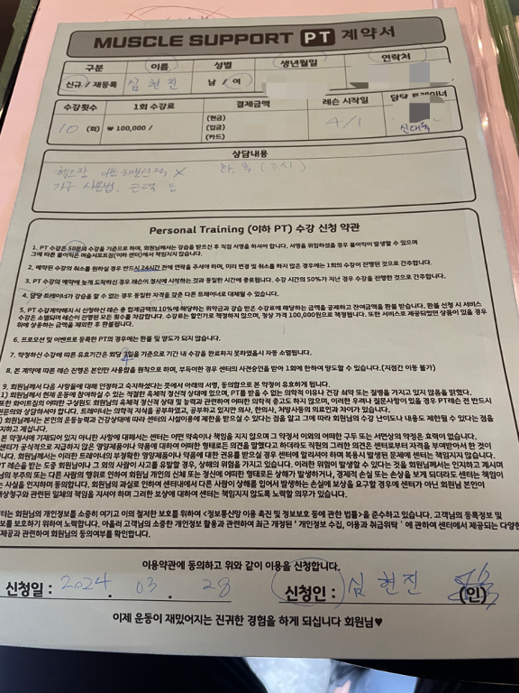 처음 받아보는 pt였는데 만족하면서 배우는 중입니다.