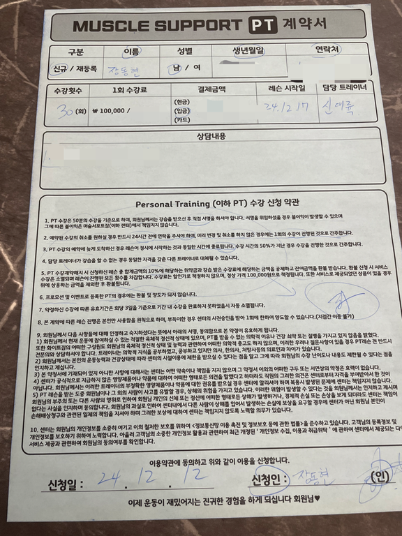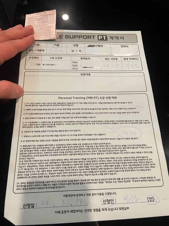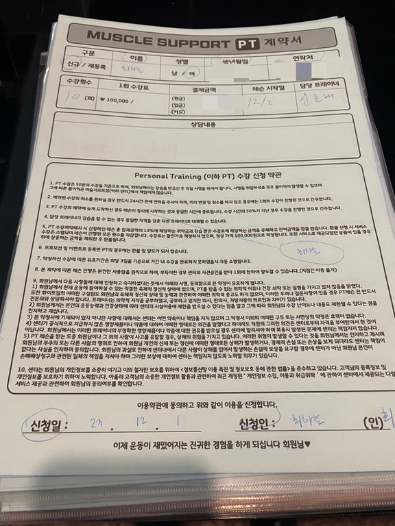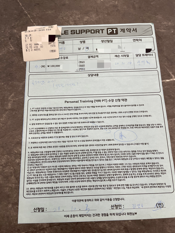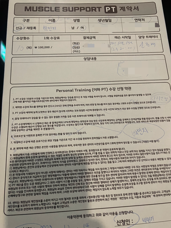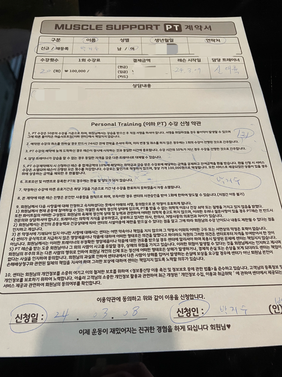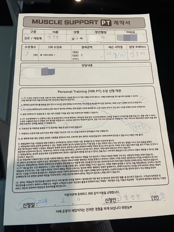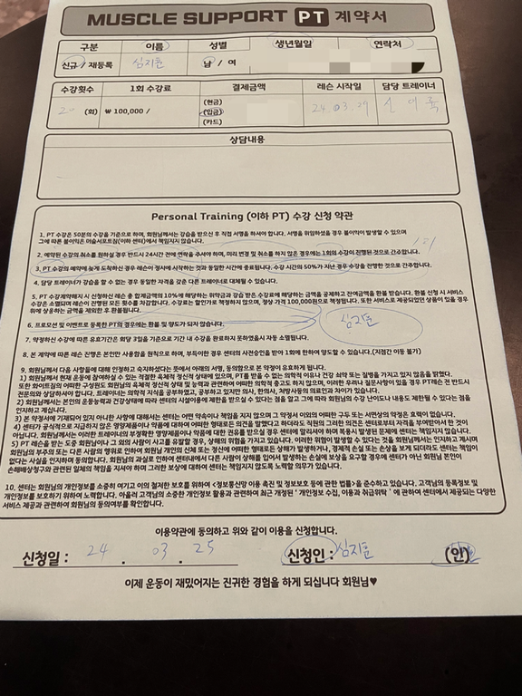 처음 받아보는 pt였는데 만족하면서 배우는 중입니다.
