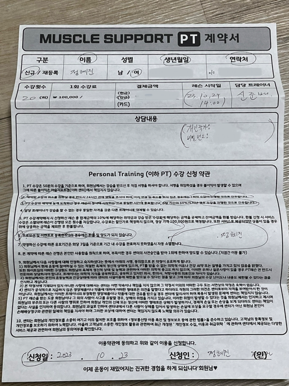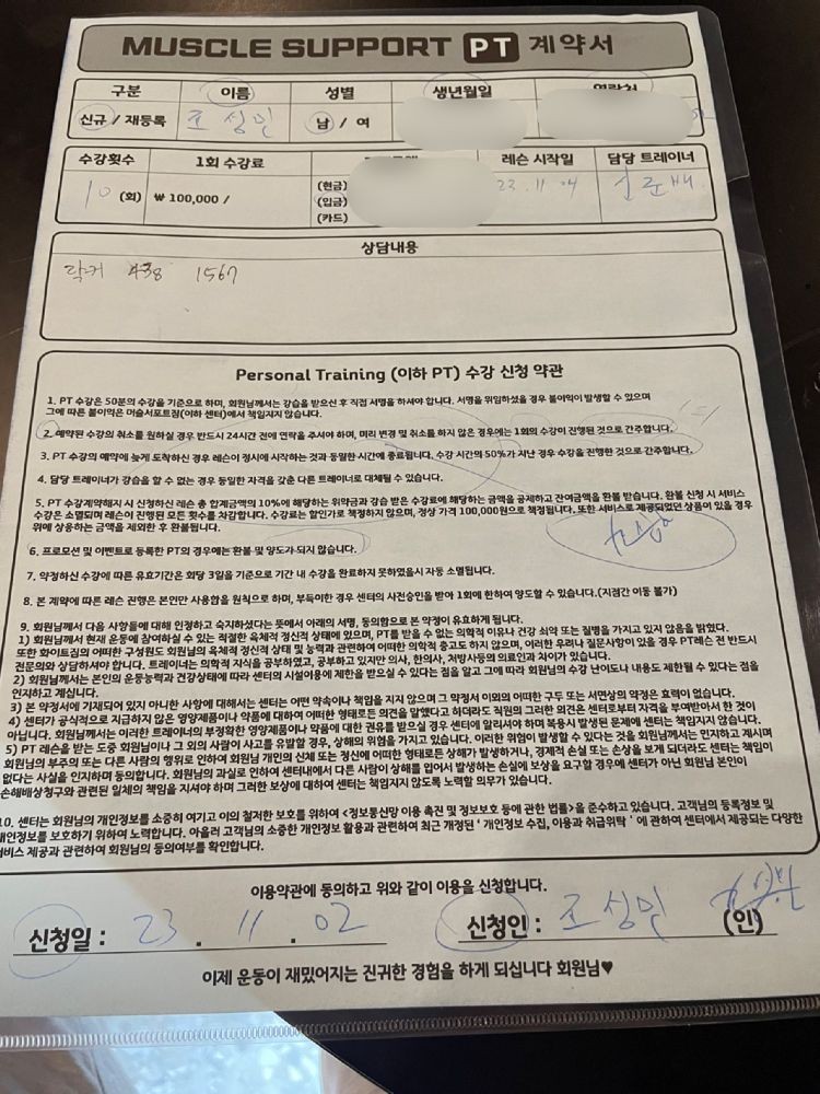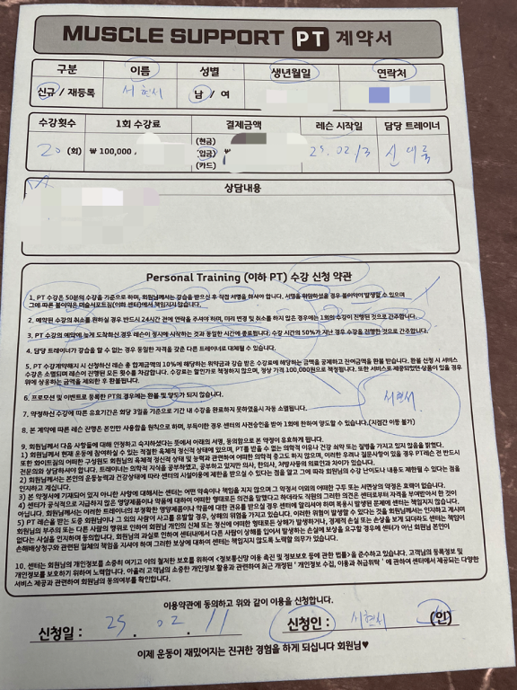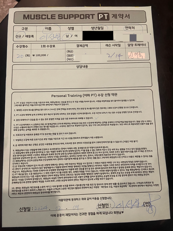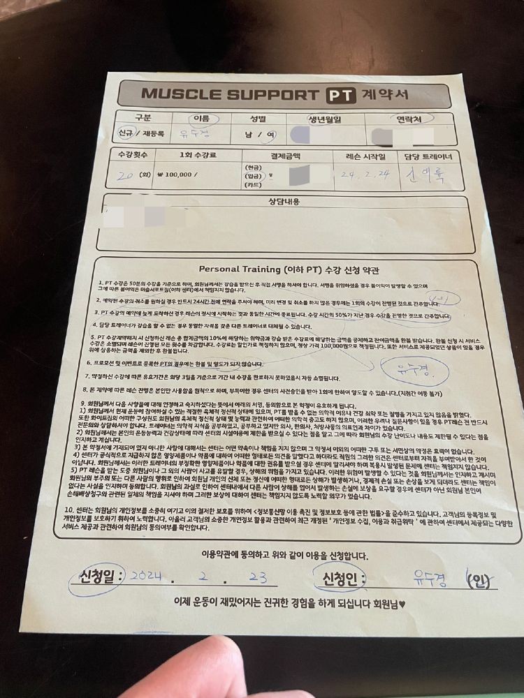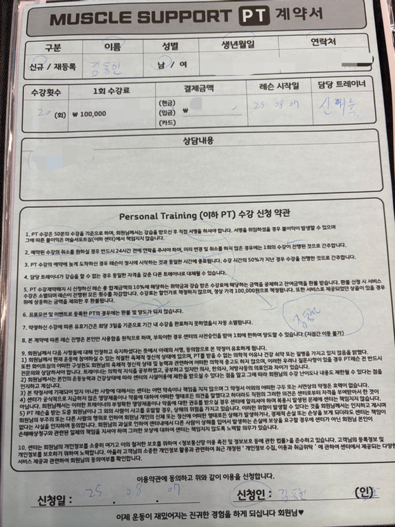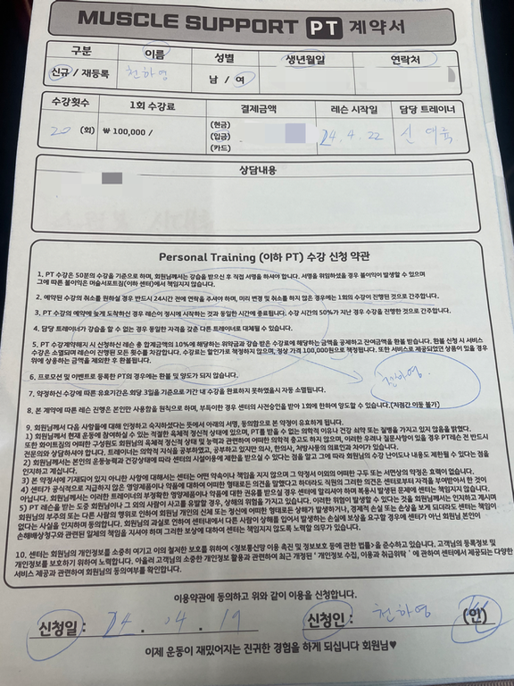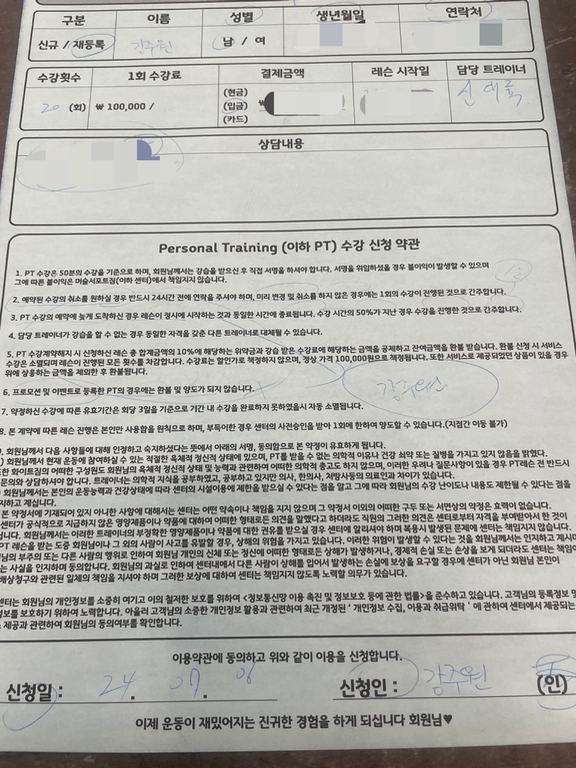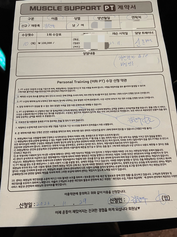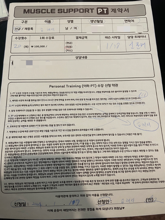 혼자서 4개월 운동하다 여러 부위에 통증이 발생해 한번 운동 제대로 배워보자 하는 마음에 20회 끊었습니다