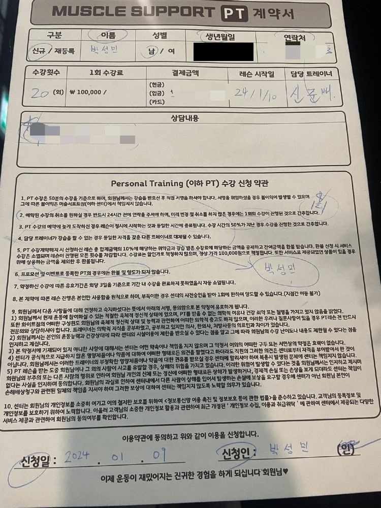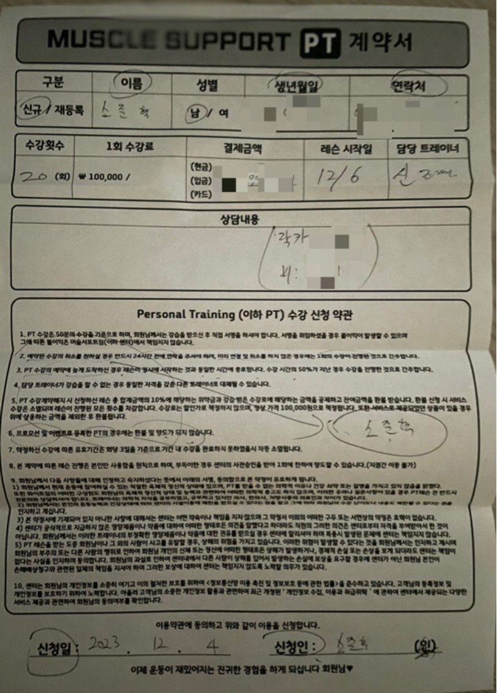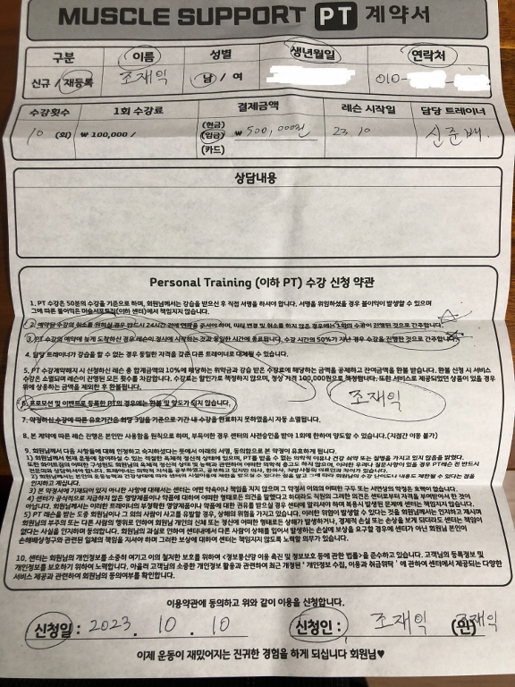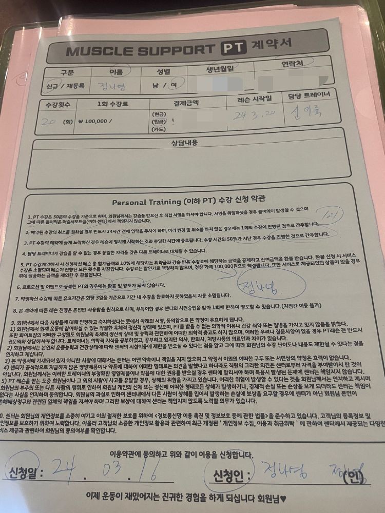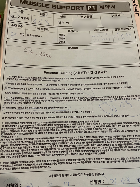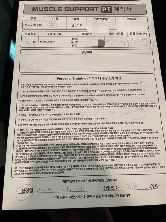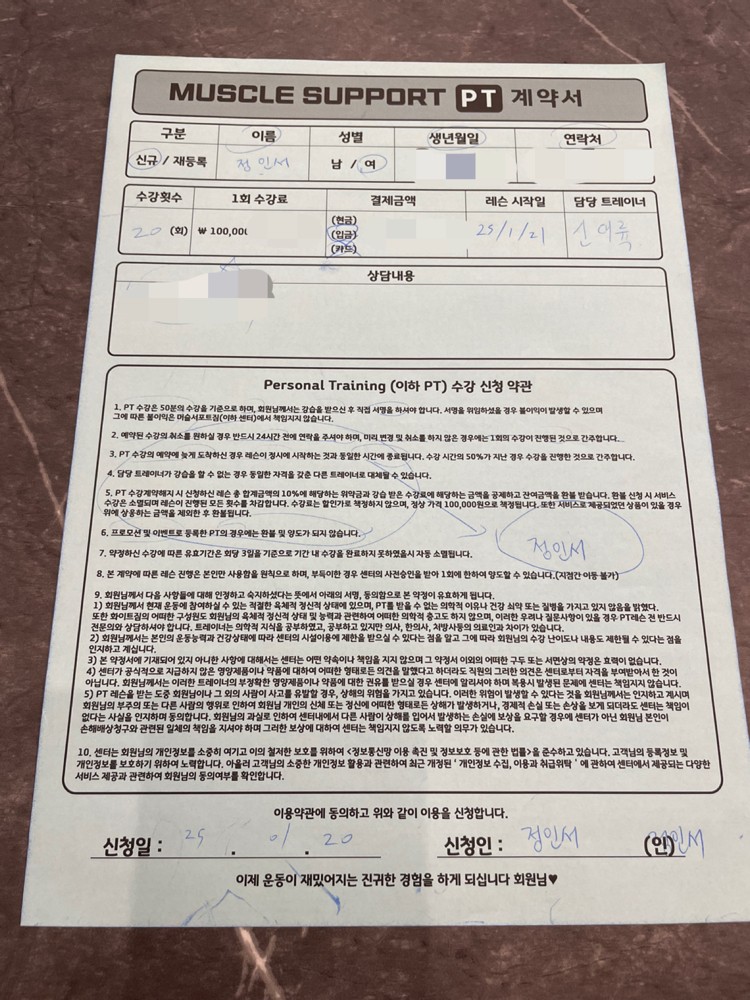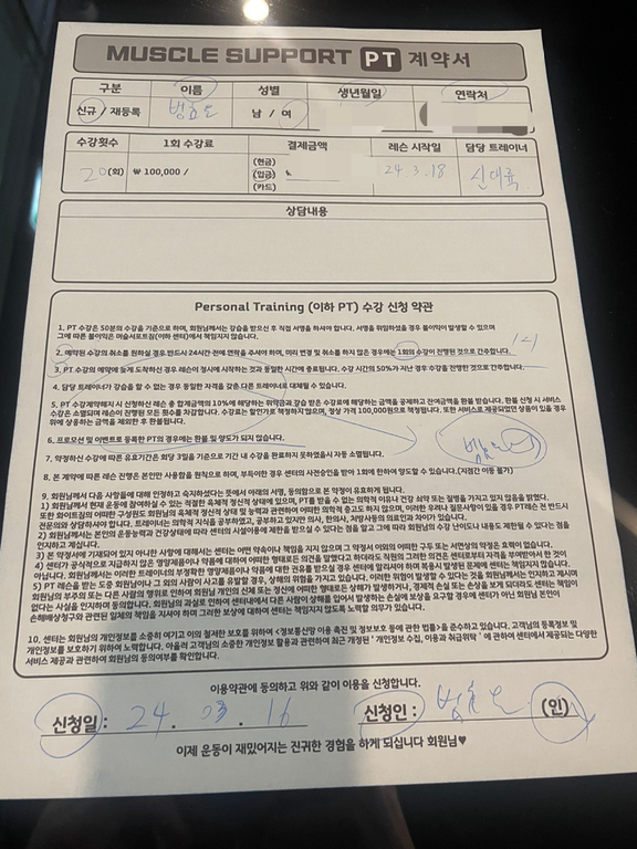 혼자서 4개월 운동하다 여러 부위에 통증이 발생해 한번 운동 제대로 배워보자 하는 마음에 20회 끊었습니다