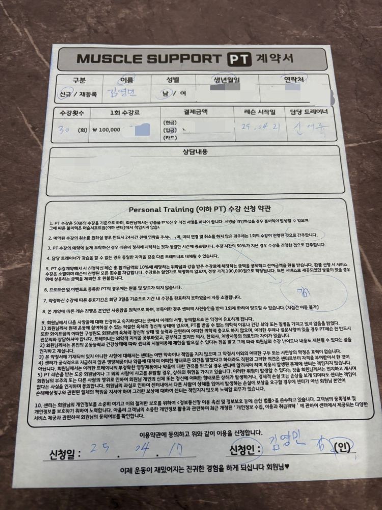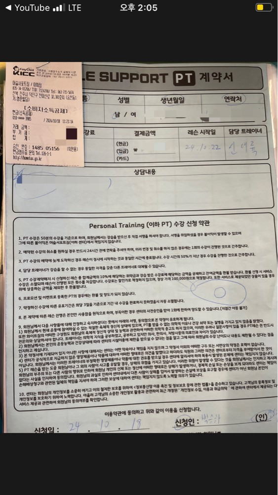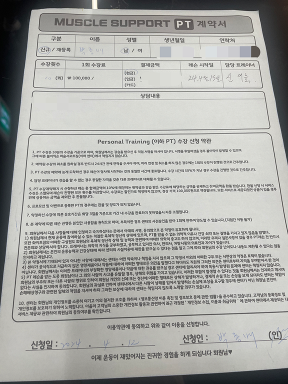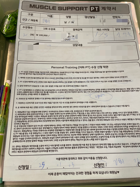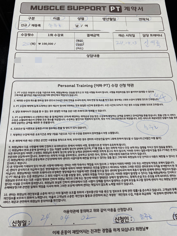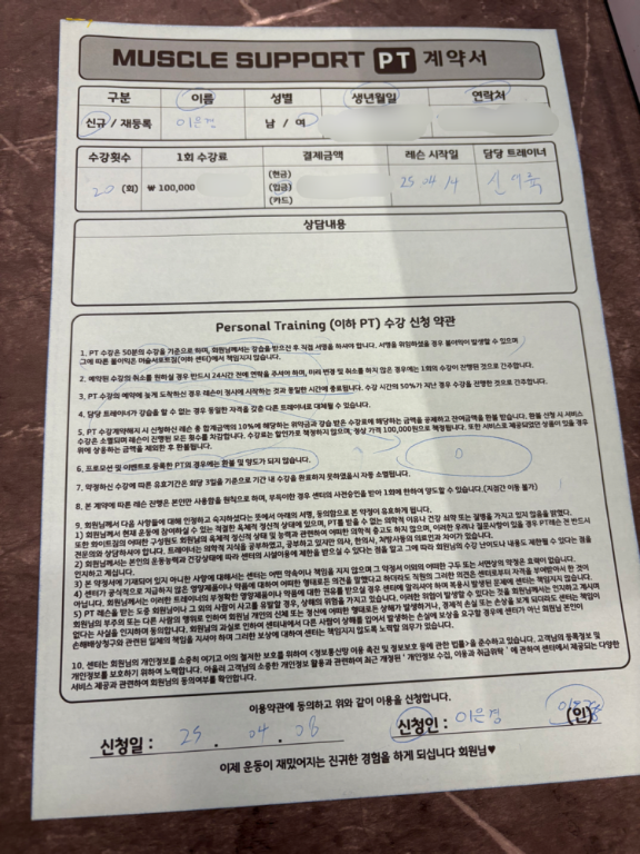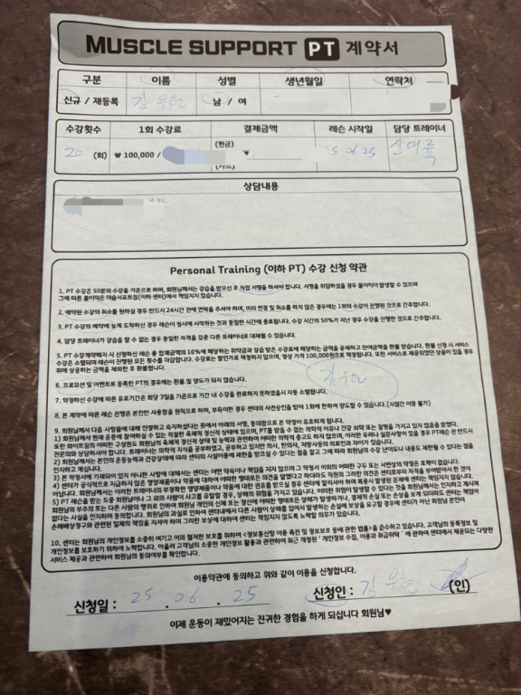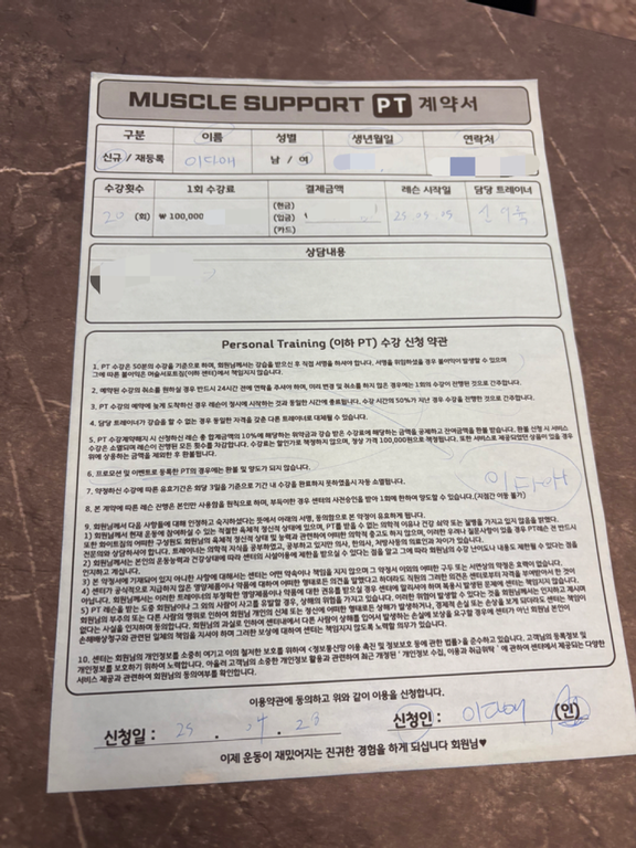 5월 초부터 지금 까지 꾸준히 pt를 받고 있습니다