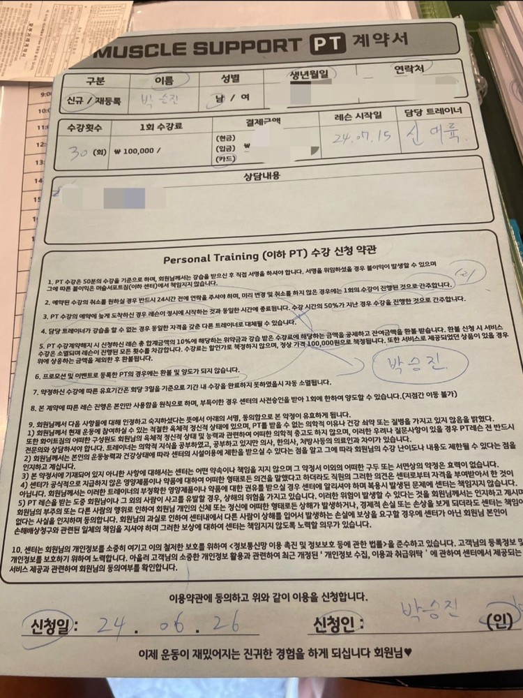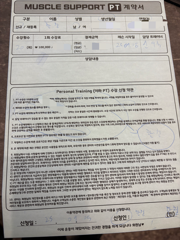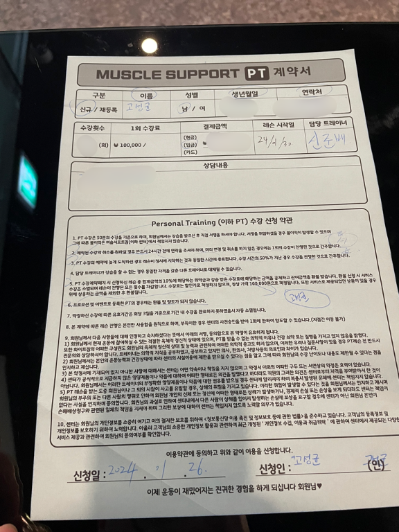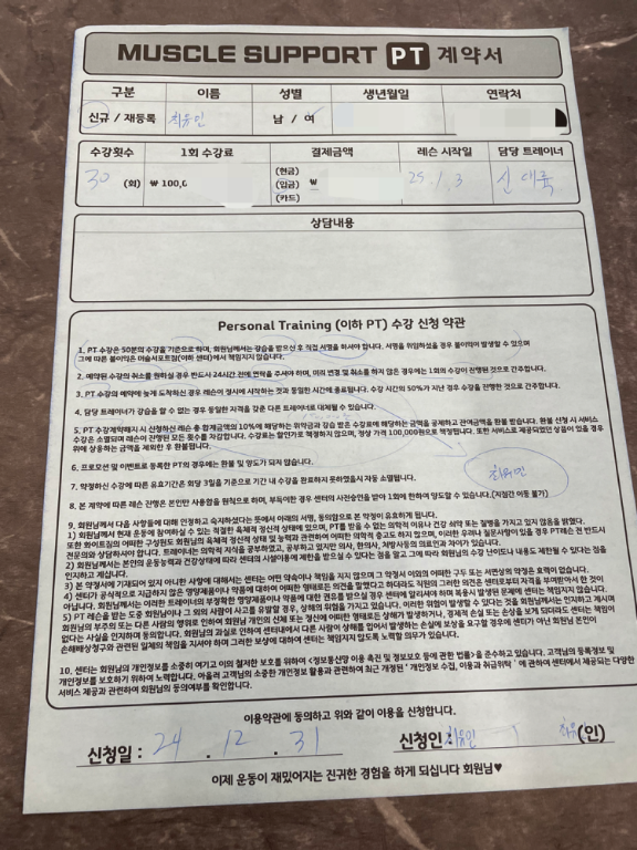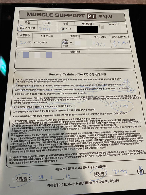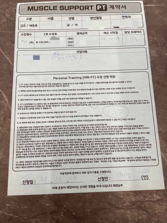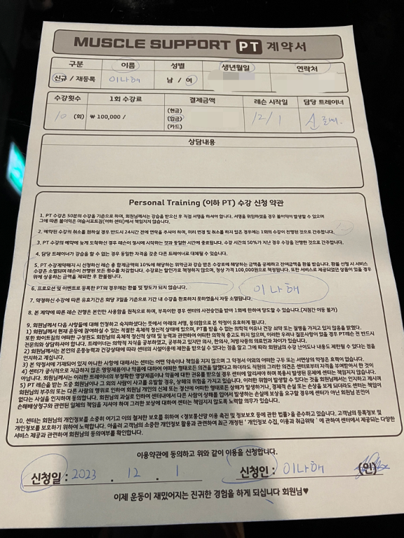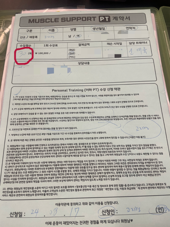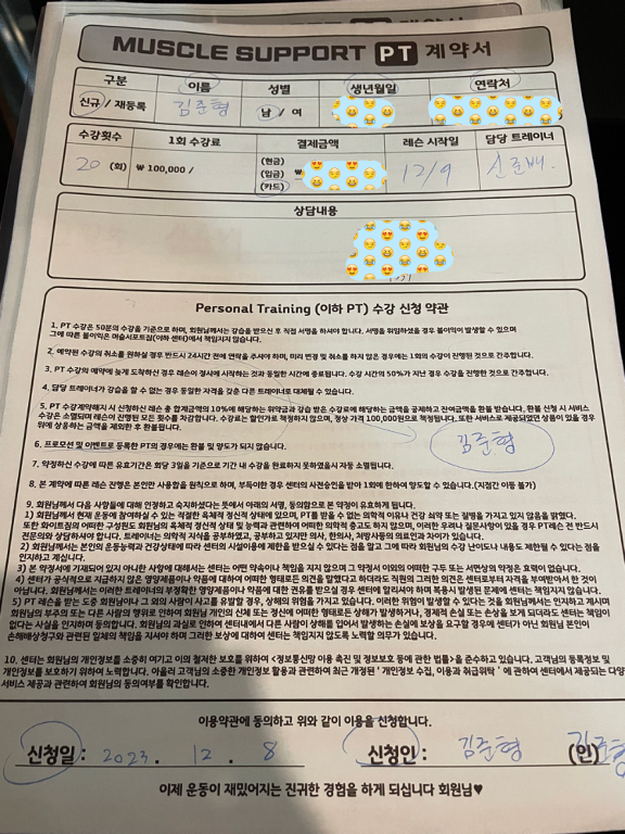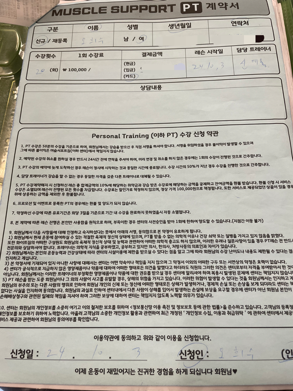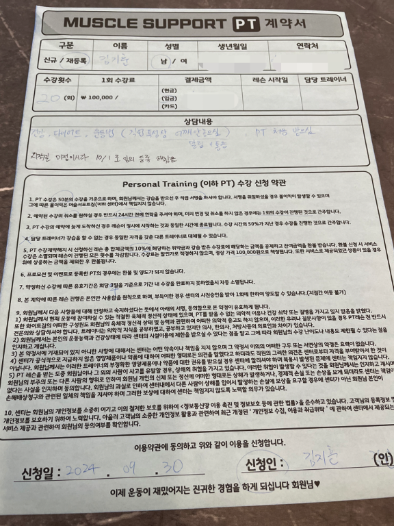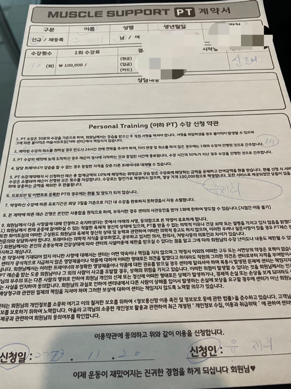 지금은 회원님께 중량과 세트수 적어드릴때에도 너무나도 발전하고 계신 모습에 코치로서도 정말 뿌듯함을 느낍니다