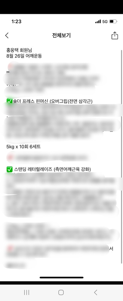 ⭐️ 피티 후 운동 방법을 정리해 보내주셔서 복습하기도 정말 쉬워요.⭐️