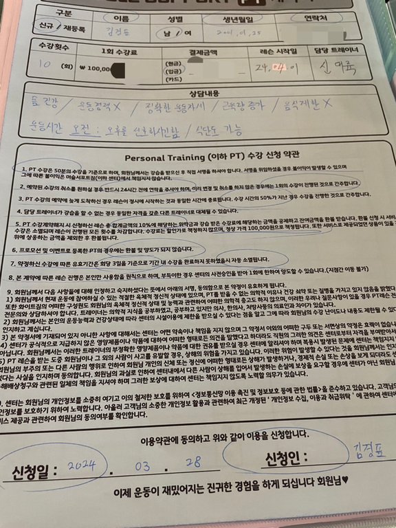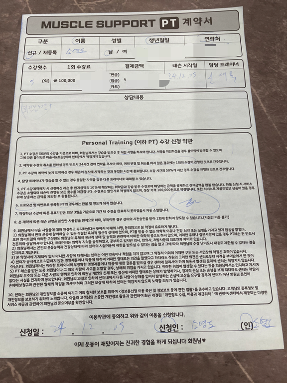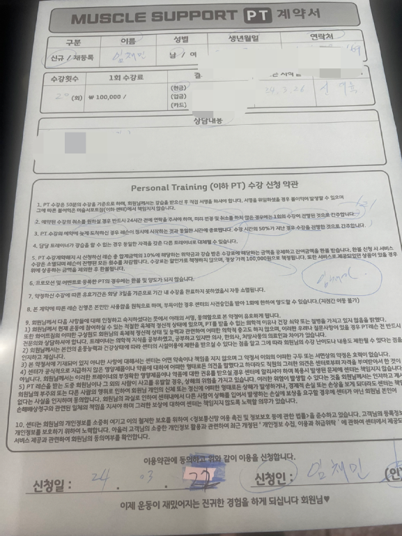 최근들어 생긴 허리 및 여러관절 통증에 7년만에 하는 헬스인데 혼자하면서 부상이 생기지 않을까 걱정이 잇었는데 선생님과 피티를 하면서 걱정이 줄어들엇습니다.
