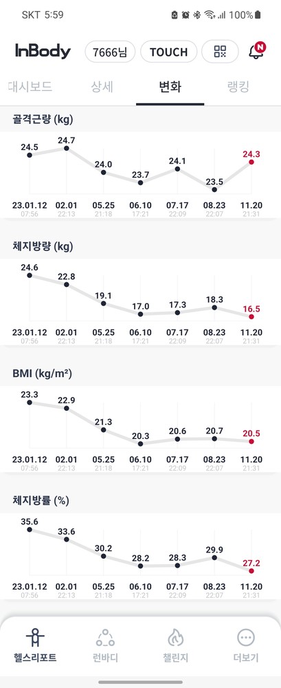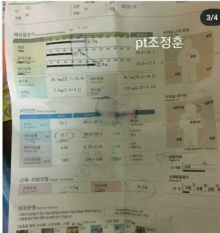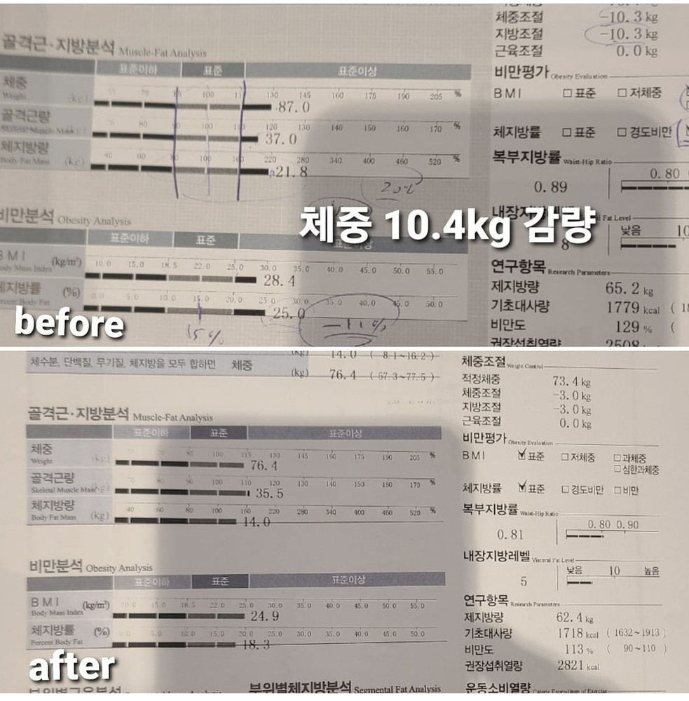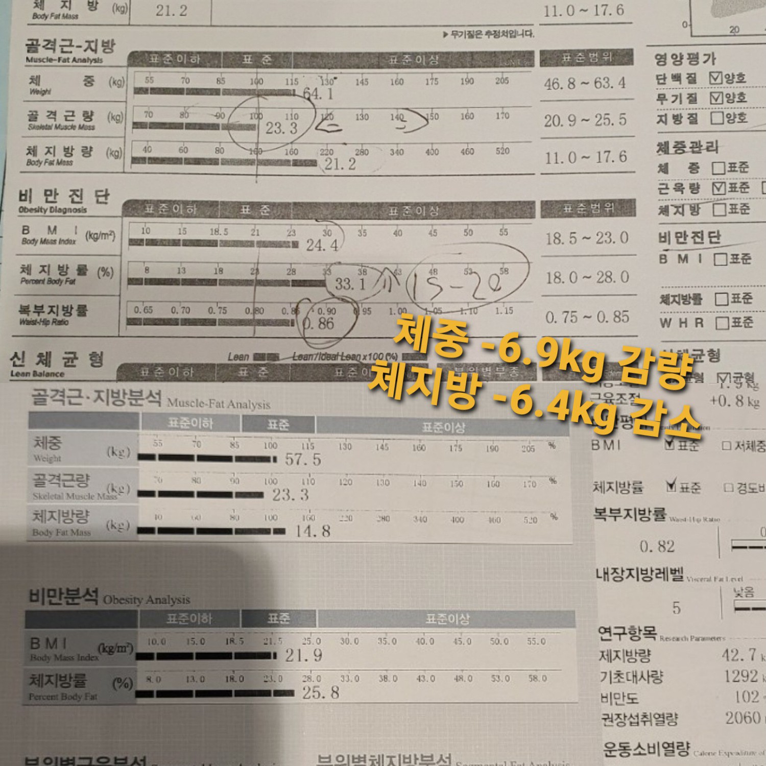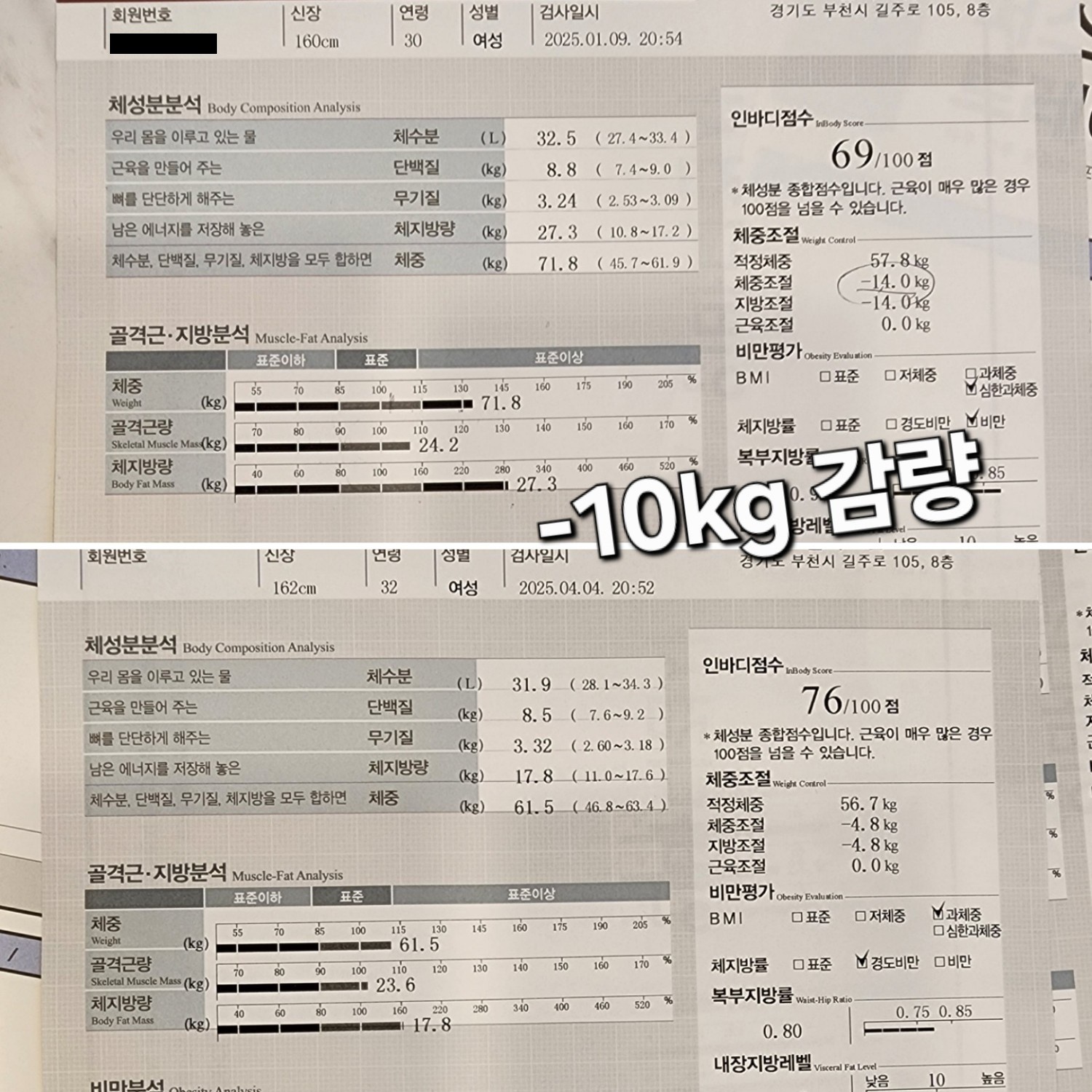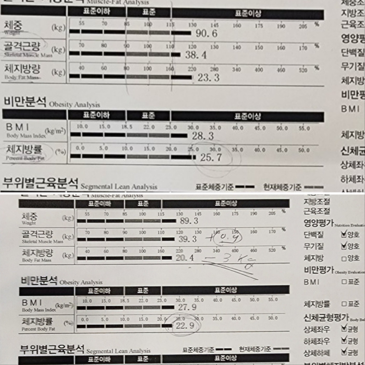 선생님께서 열정적으로 식단부터 세세한 운동 자세까지 지도해 주셔서 체지방량 8kg감량과 근육량 1kg증가 하였습니다