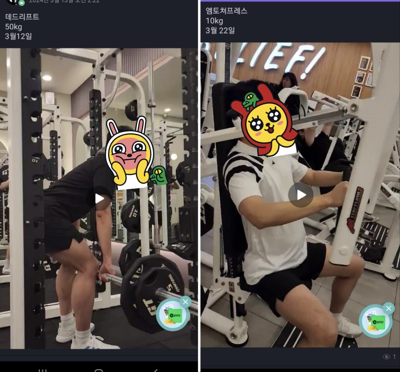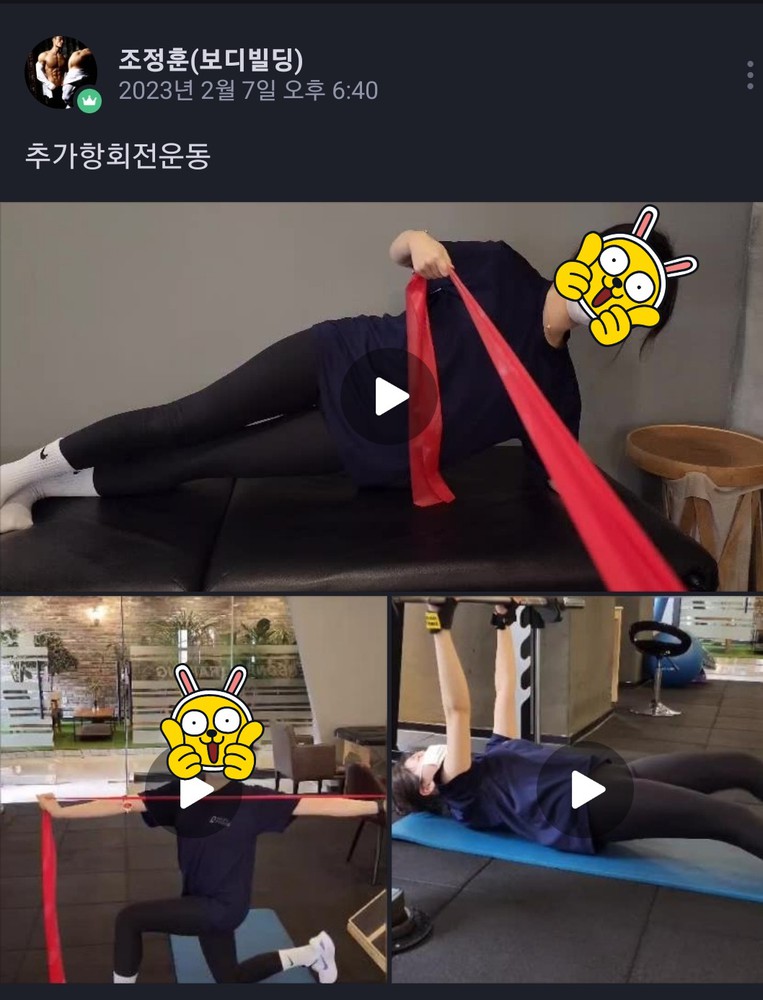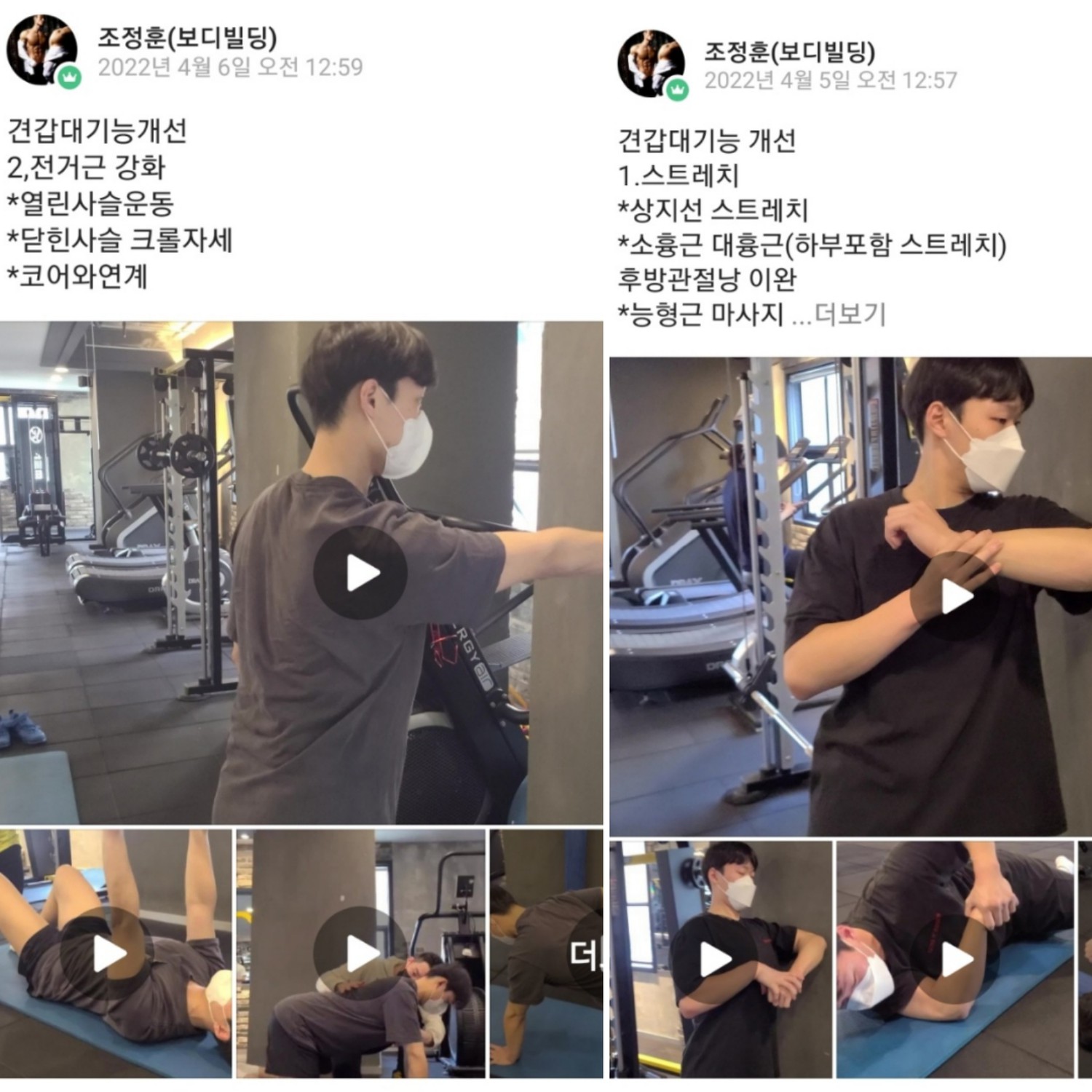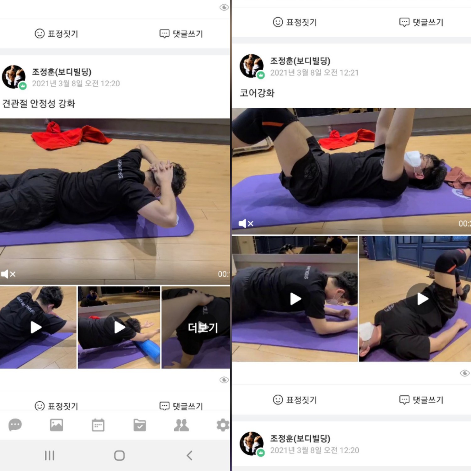 항상 당일 pt 받았던 내용은 따로 자세히 기록해 주시고 운동하는 영상도 보내주셔서 개인 운동할 때도 참고하면서 편하게 운동할 수 있었어요!!