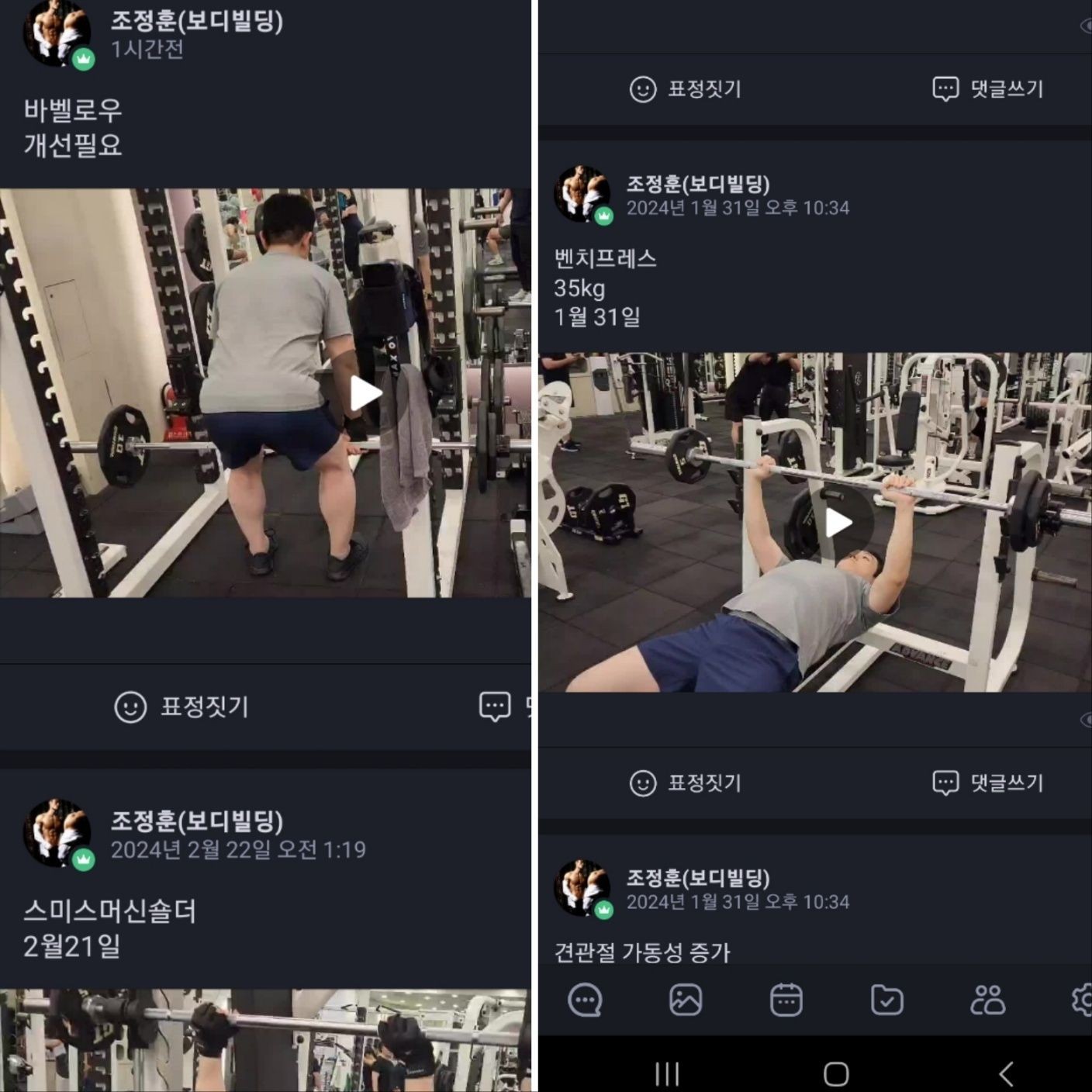 그래서 프리웨이트를 제대로 배워보자 하고 조정훈쌤을 찾아갔습니다. 그런데 정말 유튜브로는 알 수 없는 세세한 자세지도와 함께 그렇게 할 수밖에 없는 이유를 설명해주시는걸 보고 진짜 제대로 된 쌤임을 느꼈습니다. 부상없이 안전하게 프리웨이트를 배우고싶다면 진짜 조정훈쌤을 강추합니다!!