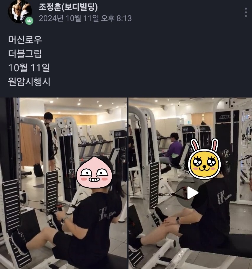 처음엔 근력 체력 다 부족해서 기구 몇 가지만 겨우 하는 정도였는데 몇주 쯤 지나고 나니 할 수 있는 기구도 늘고 들 수 있는 무게도 늘어나니 운동에 재미가 붙기 시작했습니다. 제가 가능한 선에서 운동량 조절도 해주시고 식단 코치도 잘 해주십니다🥰 개인 운동을 나오더라도 조정훈 선생님께 배운대로 운동하면서 즐겁게 건강도 챙길 수 있게 되었습니다. 앞으로도 운동 열심히 할 수있도록 도와주셔서 감사합니다!! 고생 많으셨고 감사합니다👏🏻👏🏻
