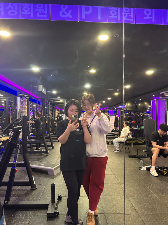 맨몸운동 자세부터 랫풀다운, 시티드로 등등 ! 여성트레이너 선생님이셔서 피티 받는데 더 편했고 잘 못하는데도 혜정쌤이 으샤으샤해주셔서 자신감도 풀충전 🫣 덕분에 피티 너무 잘 받았어요 👏💓