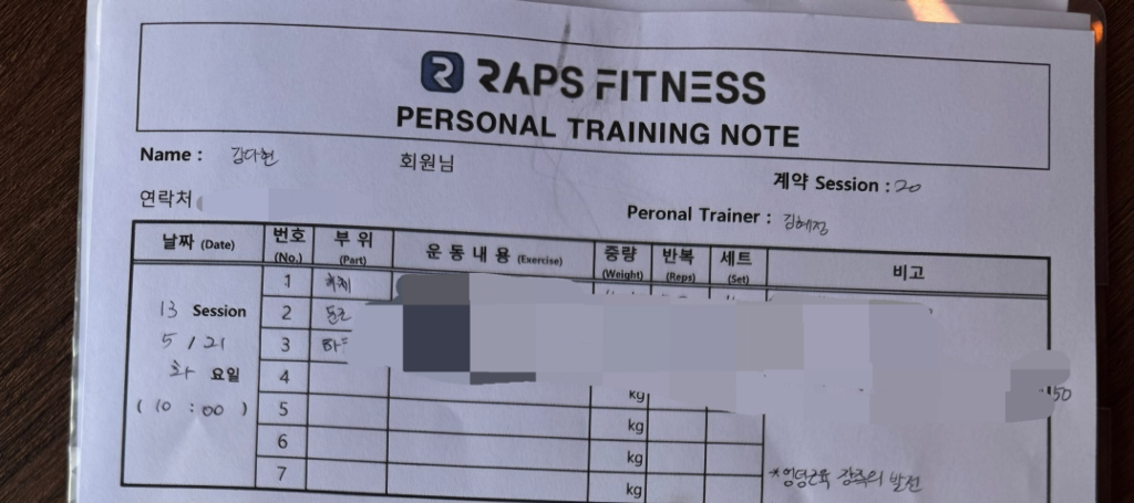 그리고 PT수업 끝나고 혼자 운동할 수 있게 운동 영상도 직접 찍어서 보내주시고 운동 기록까지 공유해주시는 부분이 너무 좋았어용👍