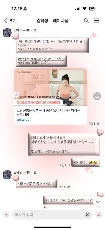 운동을 진~짜 싫어하는 편이라 꾸준히 할 수 있을까 걱정했는데, 쌤 덕분에 조금이나마 몸이랑 건강에 관심 가지게 된 것 같아요 💪