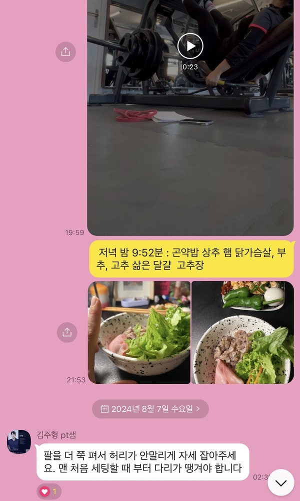 제 개인 운동 기록도 꼼꼼하게 봐주시고 운동 루틴도 짜주시고 식단도 매일 관리해주셔서 좋았습니다!