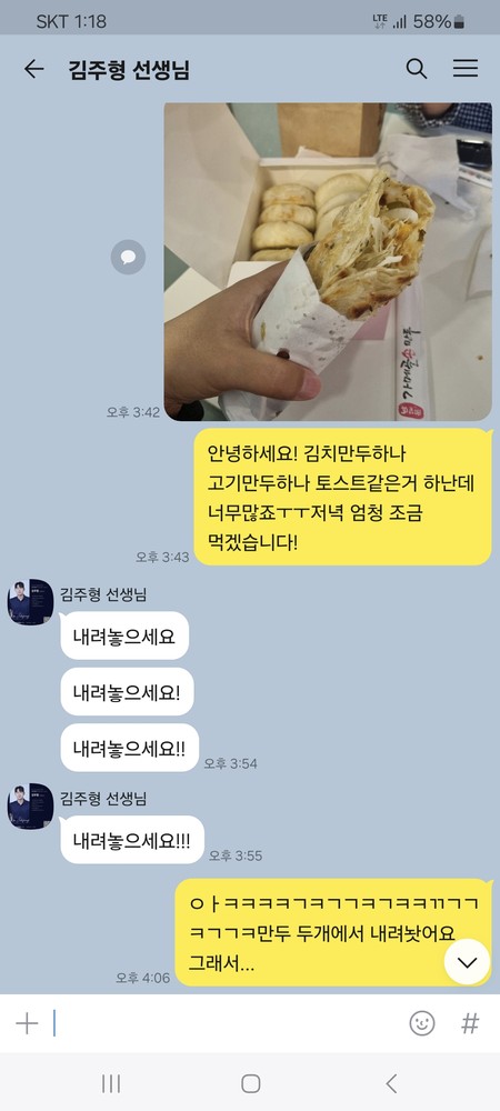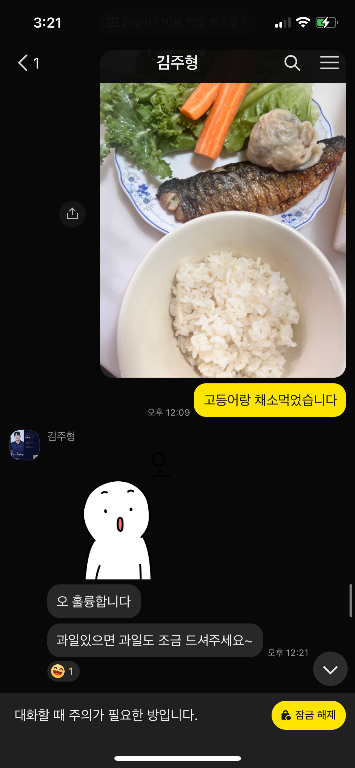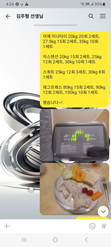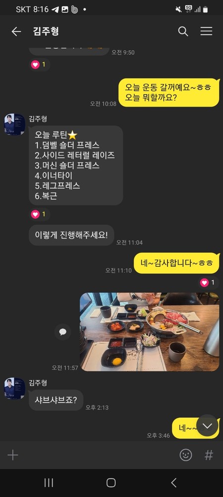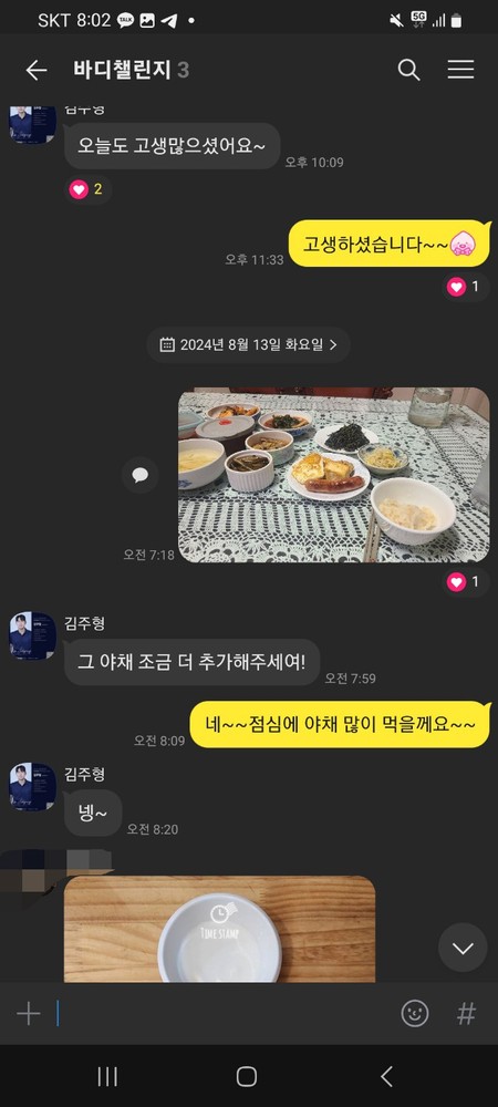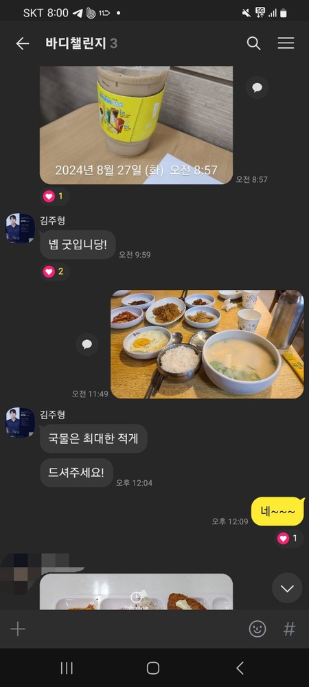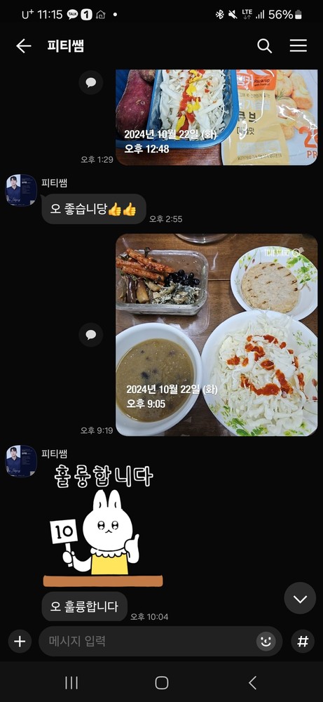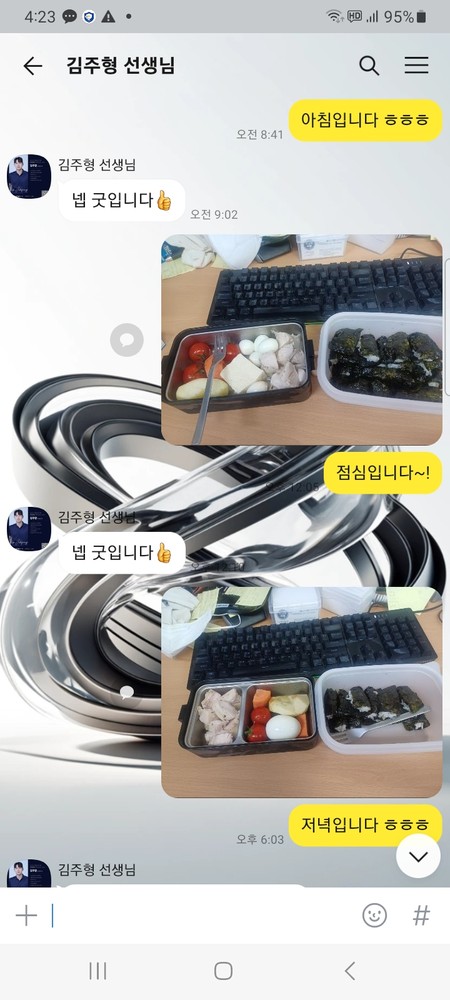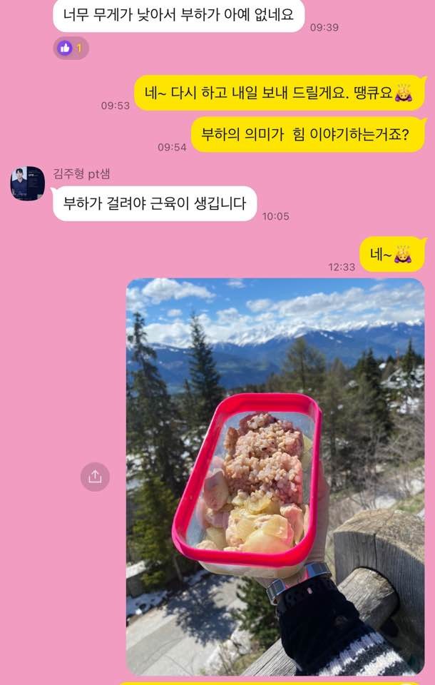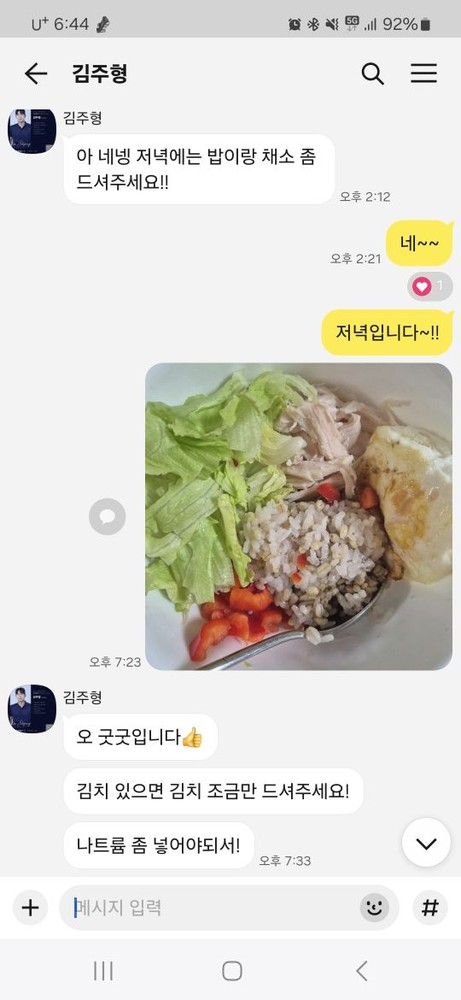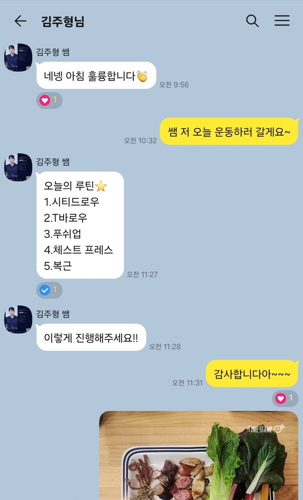 주형 트레이너님이 먼저 식단 사진을 보내달라고 하셔서