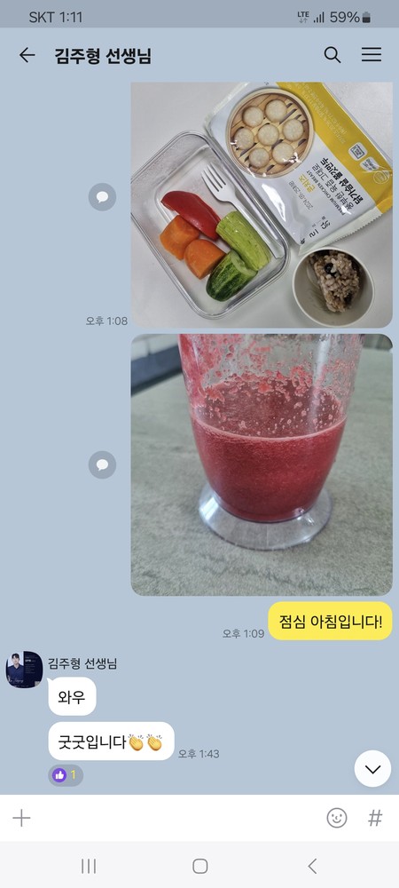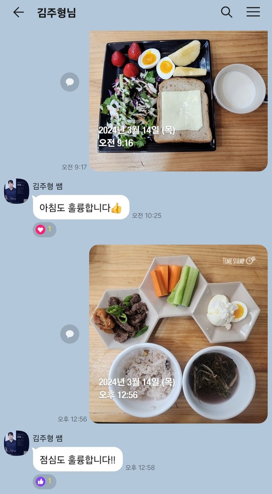 그리고 식단 까먹고 안보내드리는날은 먼저 체크하여 챙겨주시는 섬세함도 크으👍 선생님 늘 감사하며 응원드립니다!