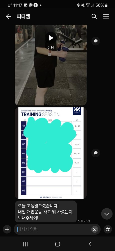 레슨끝나고 온라인케어도 해주셔서 개인운동 할 때 완전 도움됩니다😁