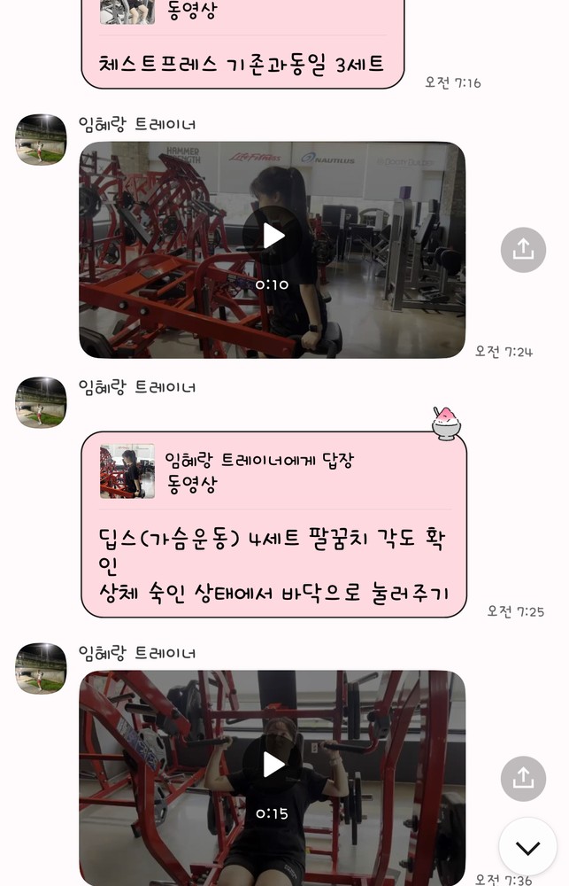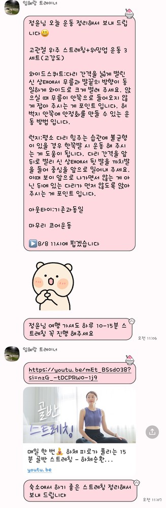 그리고 항상 운동 끝날 때마다 무슨 운동했었는지, 어떻게 했었는지, 조심할 부분 등 상세하게 보내주셔서 개인운동할 때 도움이 크게 되요 ㅎㅎ