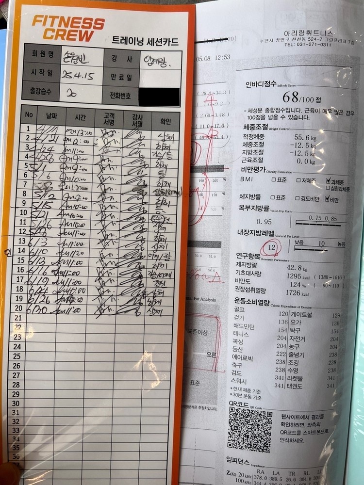 10회 PT받고 이어서 추가로 10회 더 PT받았어요~~ 선생님의 열정과 성의로 처음 시작할때보다 근육ㆍ체지방 많이 좋아졌구요!
