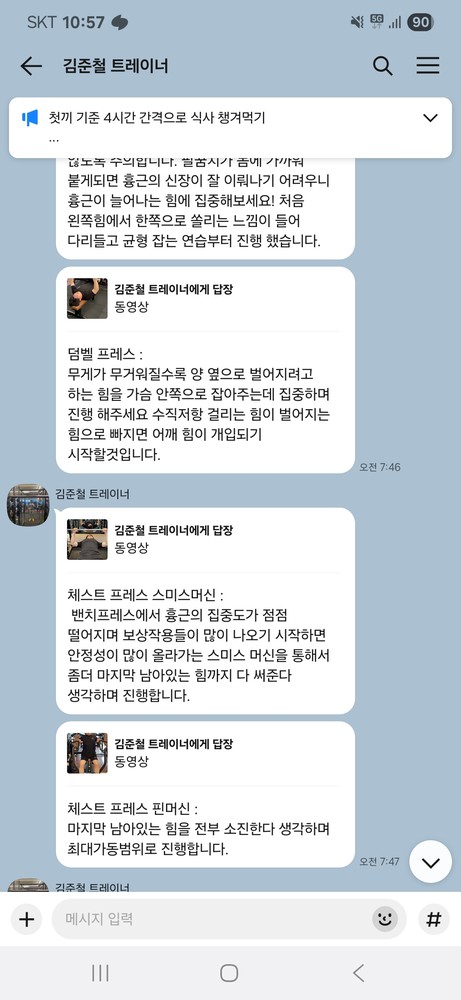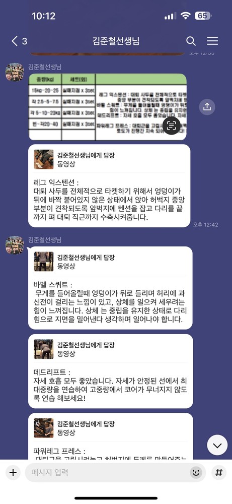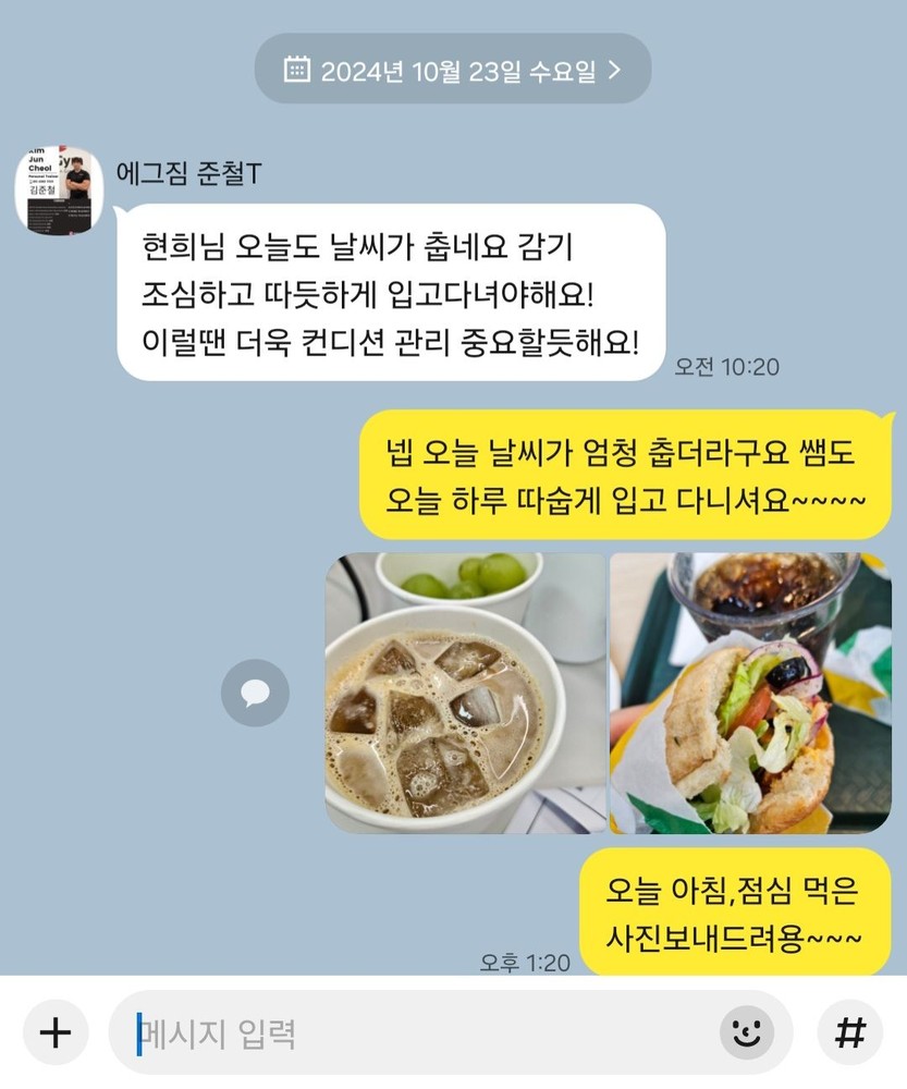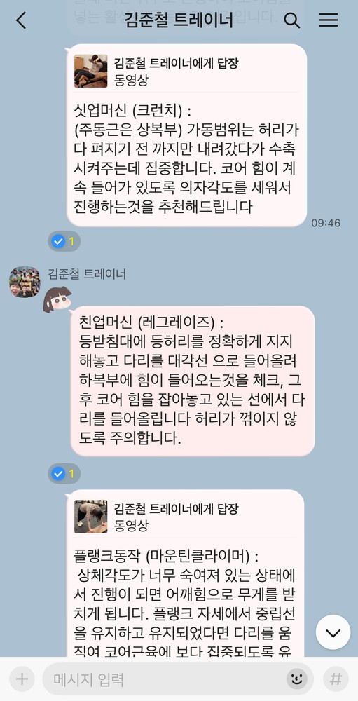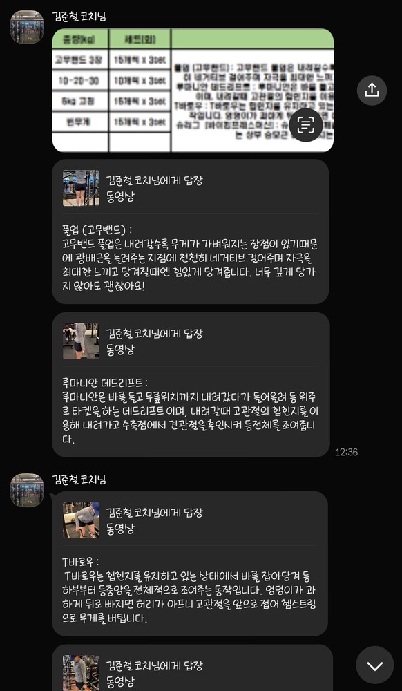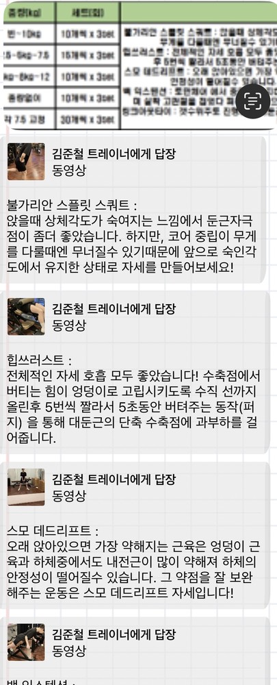 기본적으로 운동후에 오늘 진행한 운동 피드백이랑 영상 정리해서 보내주시고 식단관리도 잘해주십니다