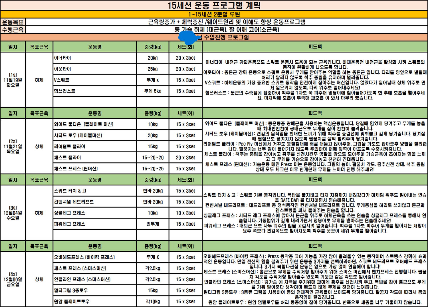 수업 중간중간 동영상 찍어 주시는데 숙지하는데 도움이 많이 됩니다 그리고 운동이 끝나면 정확한 자세 및 방법, 피드백 까지 주셔서 단점보완이 가능하고 개인운동의 플랜,식단은 뭘 먹는지,개인적으로 불편한 허리 발목의 재활방법등 준철샘을 통해 건강한 생활까지 배우는 느낌입니다