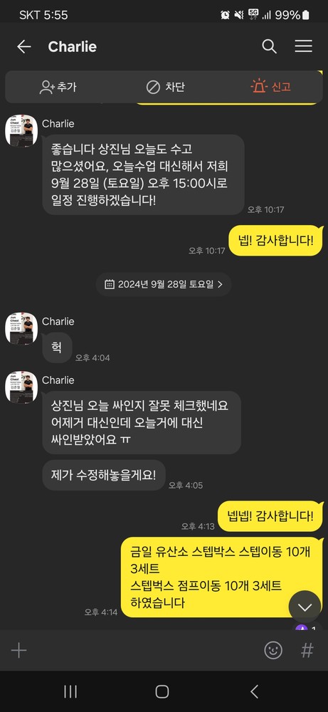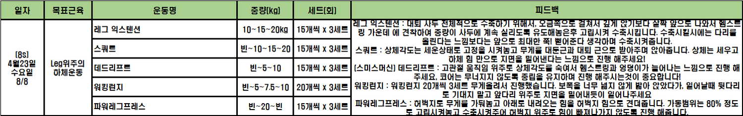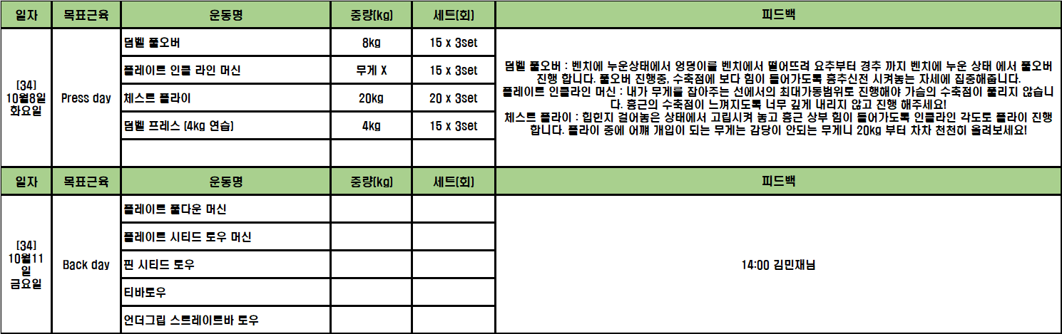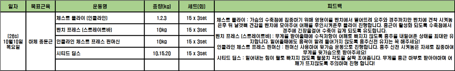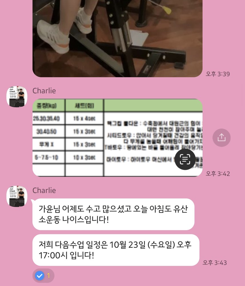 뿐만 아니라 수업 때마다 동기부여도 항상 해주시고 식단, 개인 운동했는지 매번 꼼꼼히 연락주시고 피드백도 빨라서 만족스러웠습니다!👍🏻⭐