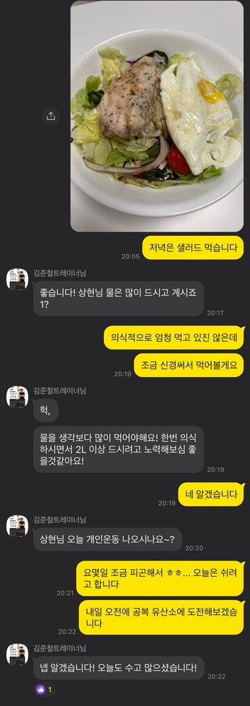 식단 피드백할때 나중에 요요 오지 않도록 탄단지 구성 잡으라고 항상 꼼꼼하게 말씀해주십니다