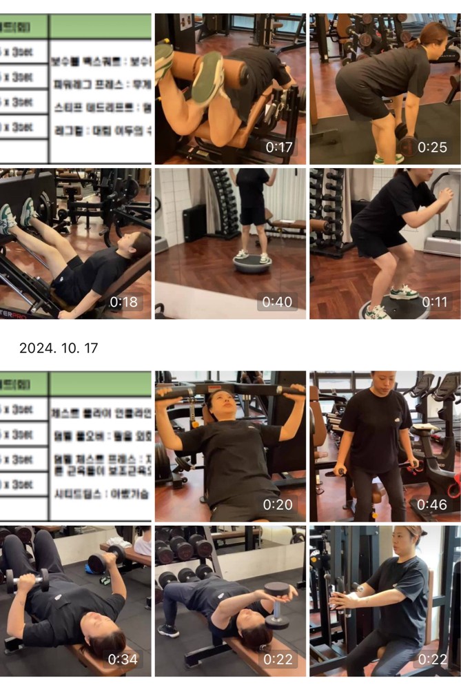 매일 운동 한 기록 , 영상을 하루도 빠짐없이 보내주셔서 혼자 복습하기도 좋은 것 같고,