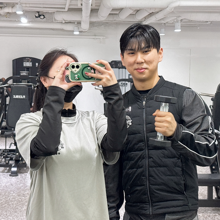 수업시간 때도 파이팅 넘쳐서 더욱 더 즐겁게 운동할 수 있었어요! 혼자 운동하면 힘들면 쉽게 포기하기 마련인데 지우쌤과 함께 수업하며 제가 쉽게 도전해보지 못했던 무게를 도전하며 자신감도 생겼습니다