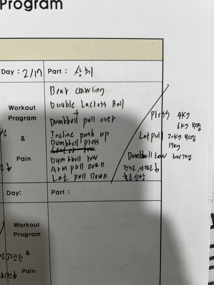 체형교정, 근성장 목적으로 피티받았는데 빠른시간에 익상견갑과 견갑 가동성이 엄청 좋아지고 이와 함께 웨이트를 적절하게 병행해주어 근육량도 많이 증가하여 너무 만족하였습니다 세세하게 하나하나 옆에서 교정해주셔서 감동입니다..