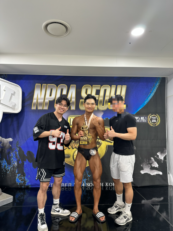 3년 동안 혼자 운동을 해서 첫 대회를 6등으로 마무리하고 대회 성적에 더 욕심이 생겨 쿤선생님에게 찾아갔습니다 사진에서처럼 저를 1등으로 만들어주신다고 약속하셨고 저를 1등으로 만들어 주셨습니다!! 티칭능력도 뛰어나시고 힘든 운동을 항상 즐겁게 해 주시는 쿤선생님에게 PT 받아보세요