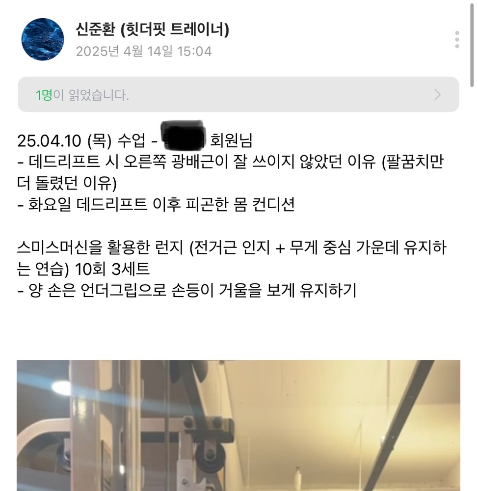 이 헬스장을 1년 넘게 다니고 있고, 신준환 트레이너님께 PT를 받고 있는데 정말 만족스럽습니다! 준환쌤은 단순히 운동만 알려주시는 게 아니라, 제 몸 상태를 꼼꼼히 체크해서 그에 맞는 운동 루틴을 짜주시고, 몸이 불편하거나 통증이 있을 땐 재활 운동이나 스트레칭 방법까지 자세히 알려주세요. 덕분에 운동이 부담스럽지 않고, 오히려 재밌고 건강하게 다닐 수 있었어요. 운동 처음이신 분들, 자세나 체형이 고민이신 분들, 예전에 다친 경험이 있으신 분들께 꼭 추천하고 싶습니다. 시설도 깔끔하고 분위기도 좋아서 앞으로도 꾸준히 다닐 예정이에요. 신준환 트레이너님 정말 감사합니다!