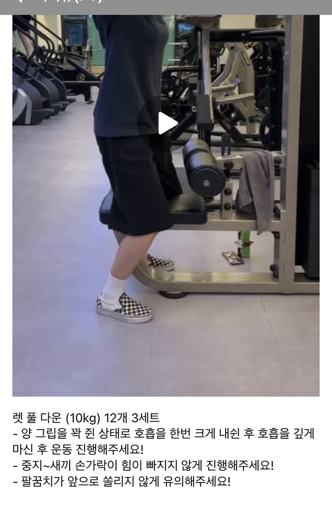 매수업마다 이렇게 일일히 영상 찍어서 그 날 배웠던 운동들 정리해서 올려주시는 선생님은 처음이예요,, 감동🥹 그리고 개인 숙제도 내주셔서 헬스장 가서 숙제하거나 영상 보면서 배웠던거 복습하면 되서 뭐해야하나 고민 할 필요도 없습니다 ㅎㅎ 준환쌤께 피티 받고 불편했던 승모 찝힘도 많이 개선되어서 돈이 하나도 아깝지 않아요-!!!