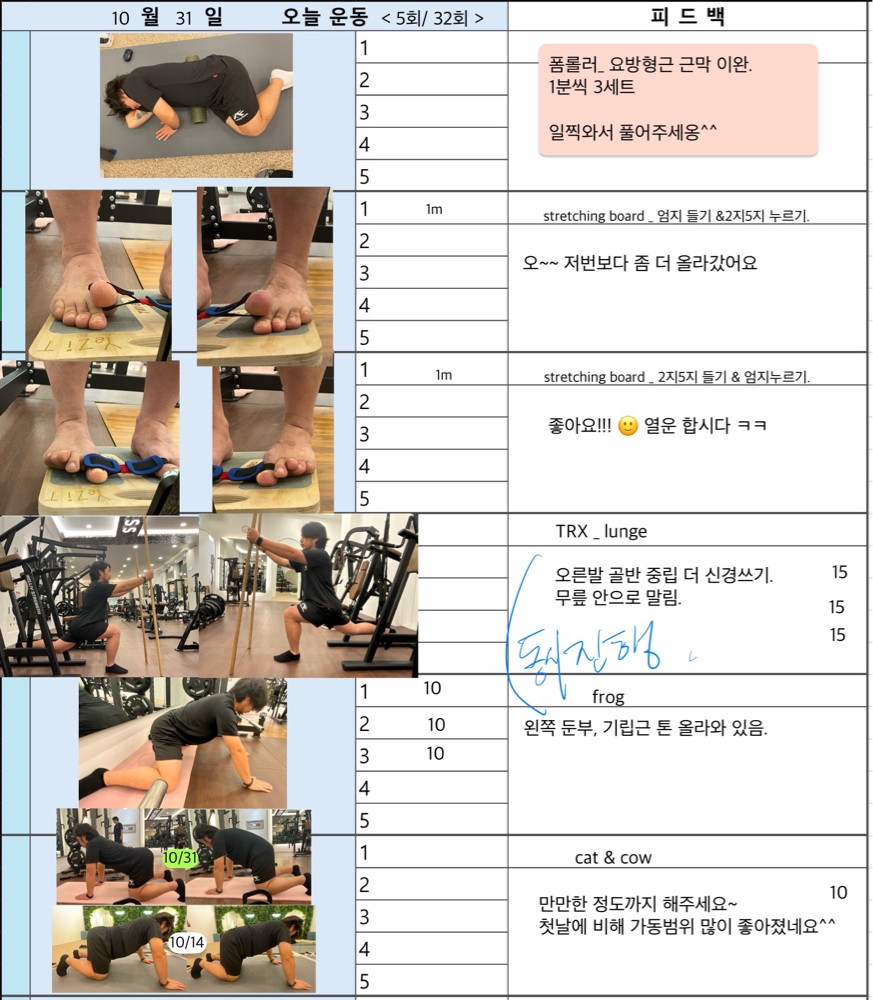 또 매번 사진과 영상을찍어주시고 운동일지를 써주셔서 내가 어떻게 변하는지 확인할 수 있어 큰 도움이 되고 있어요❤️