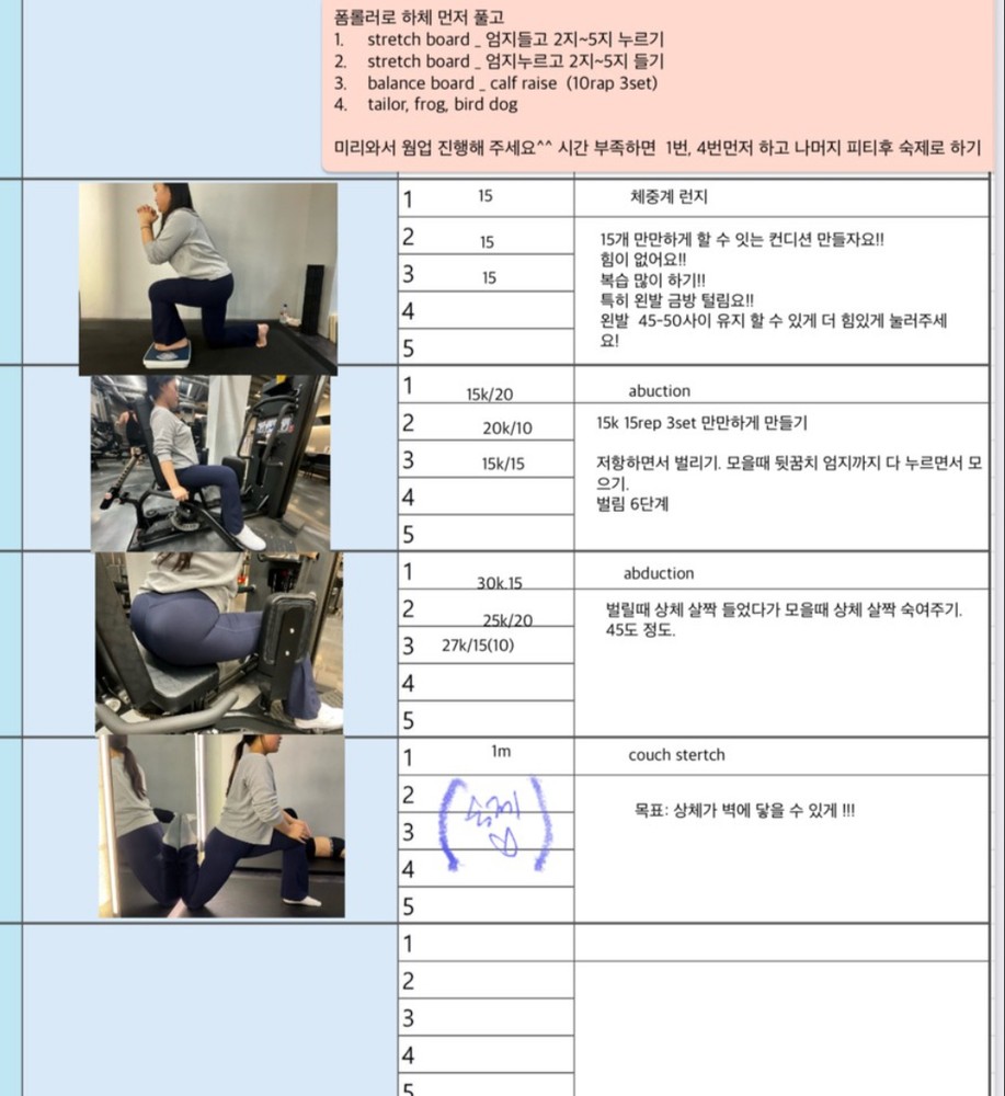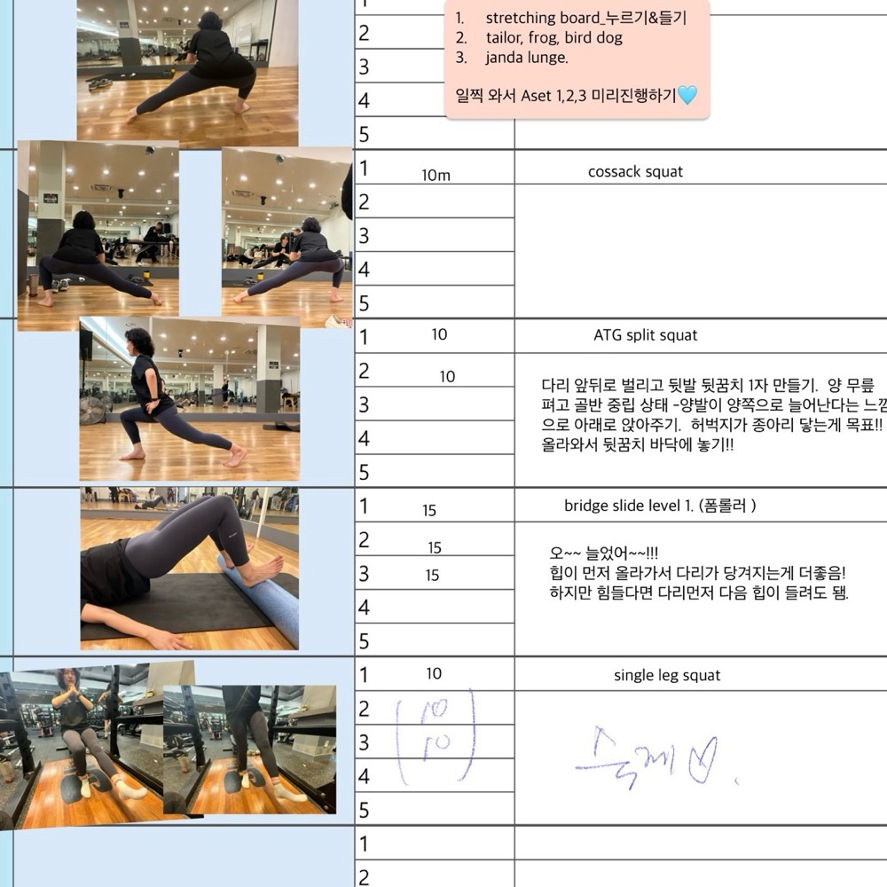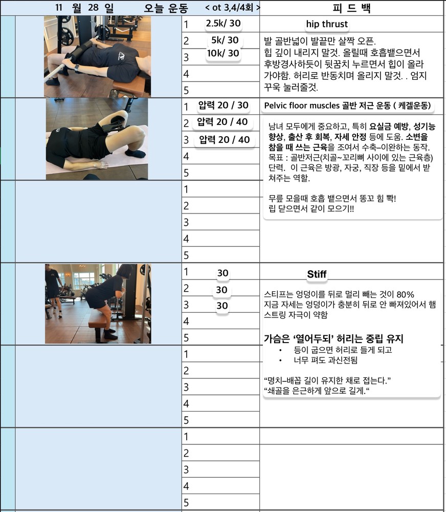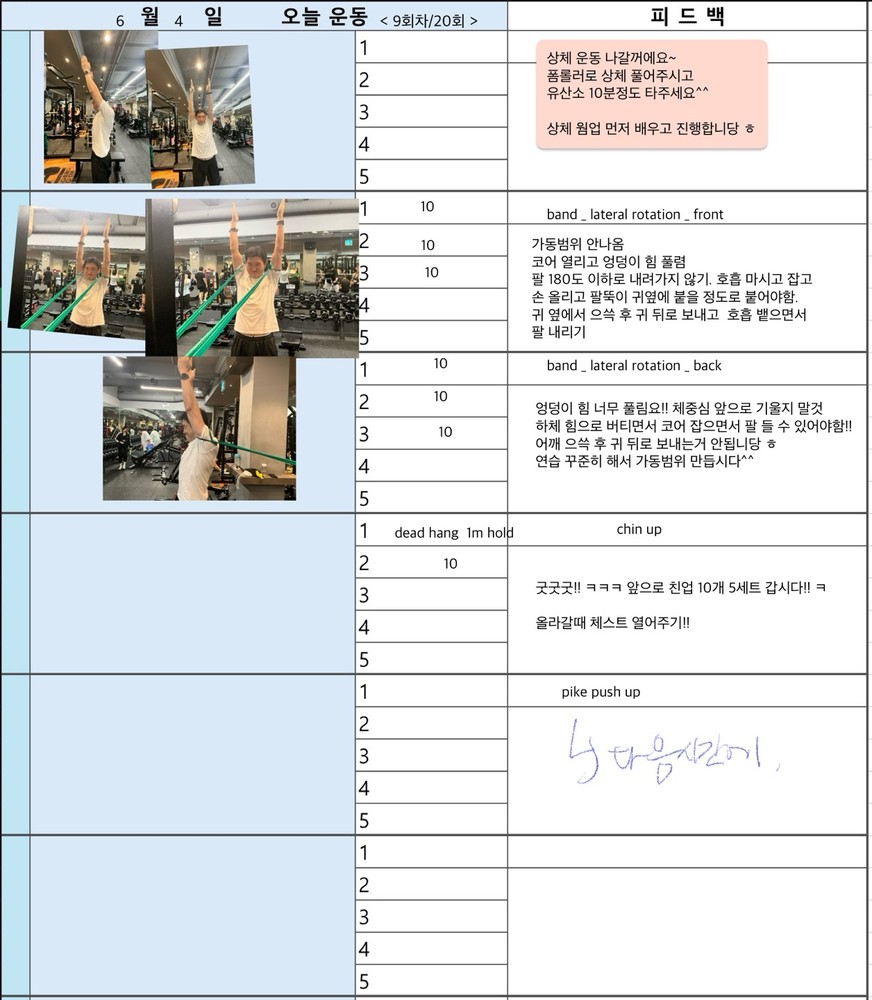 그리고 PT 하는 날 아침마다 미리 일지 공유해주셔서 오늘 뭐하는지 알게되고, 스케줄도 까먹지 않게되서 존좋👍👍👍