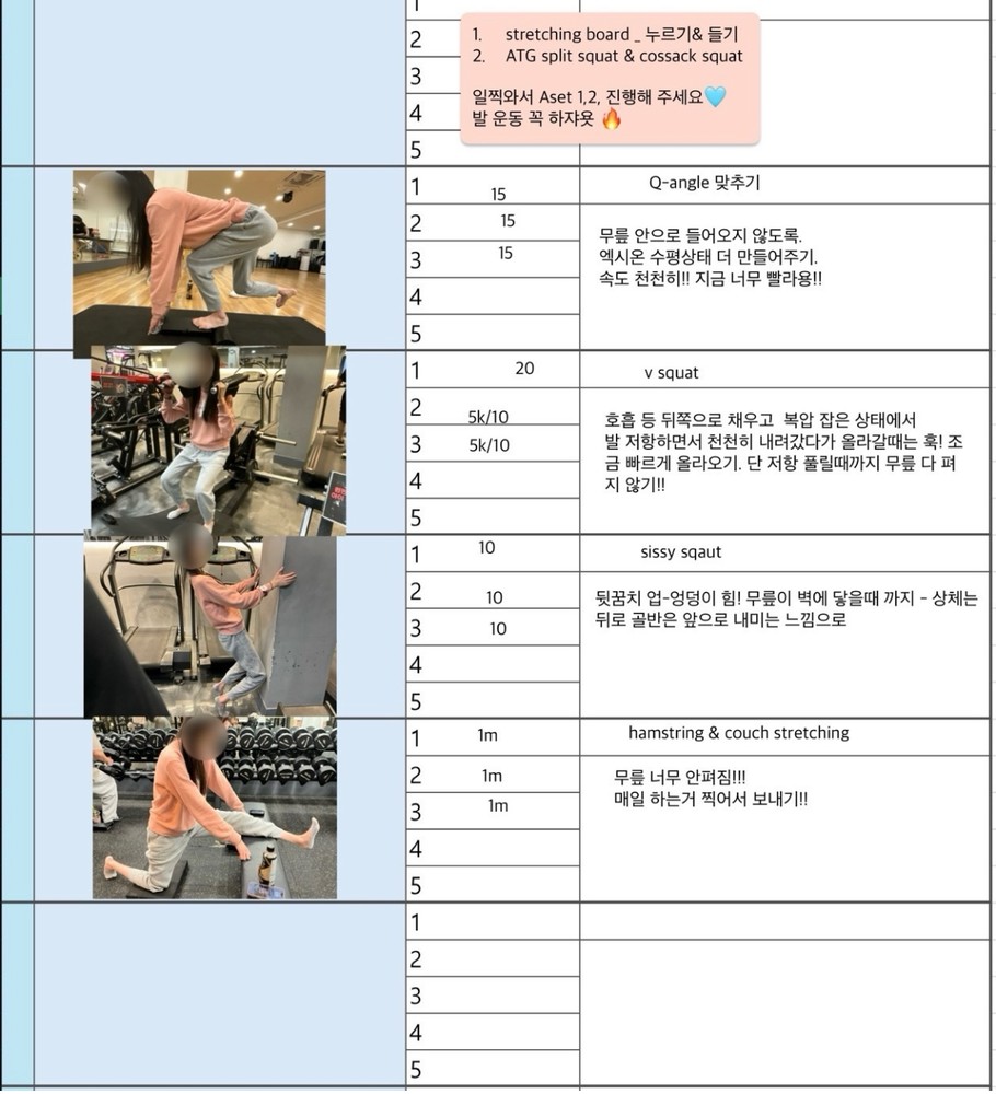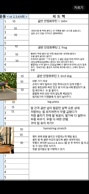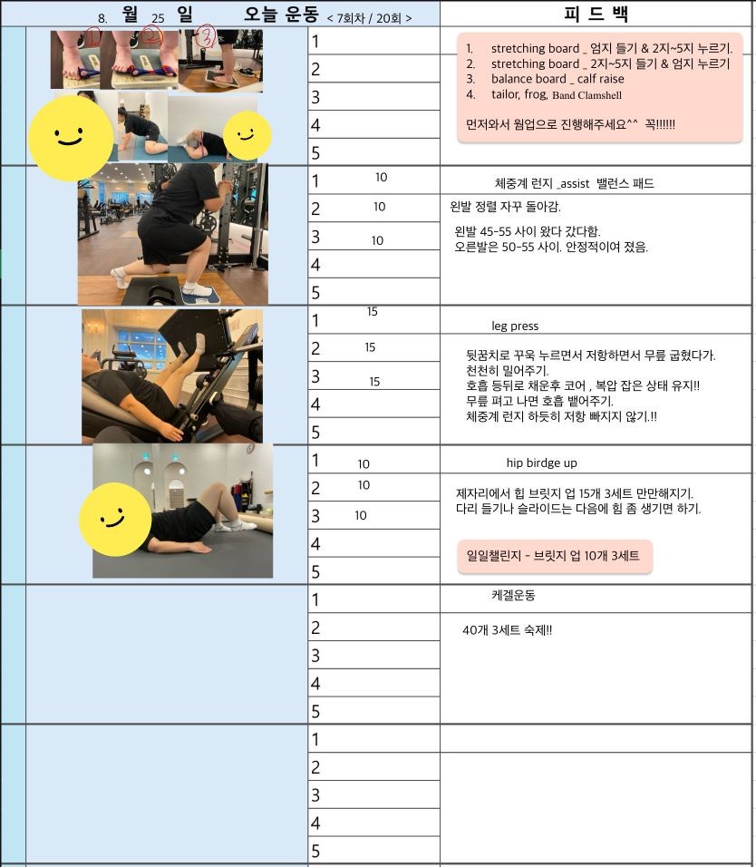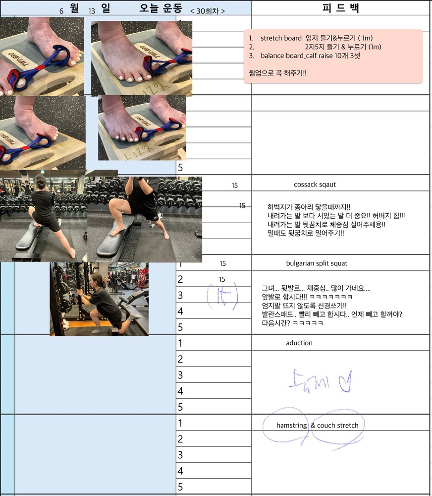 그리고 PT 하는 날 아침마다 미리 일지 공유해주셔서 오늘 뭐하는지 알게되고, 스케줄도 까먹지 않게되서 존좋👍👍👍