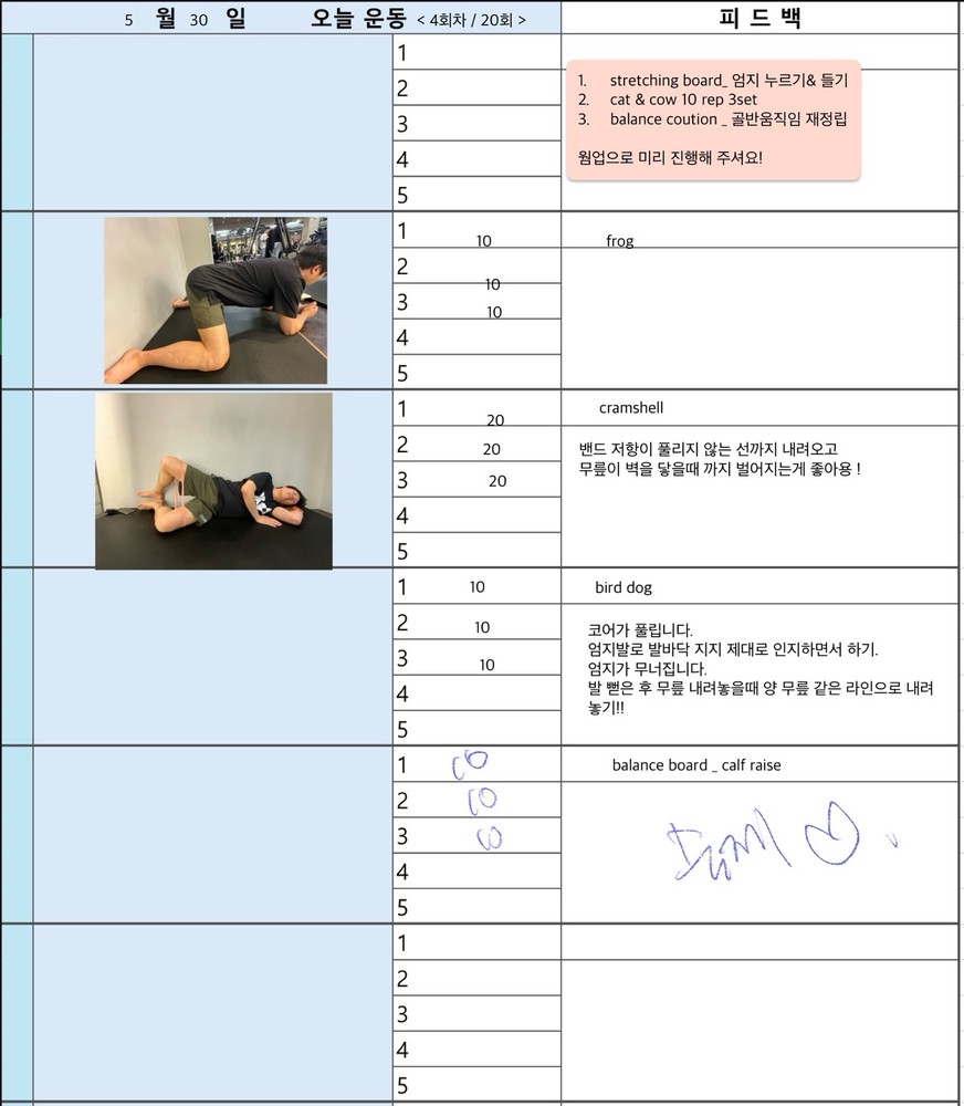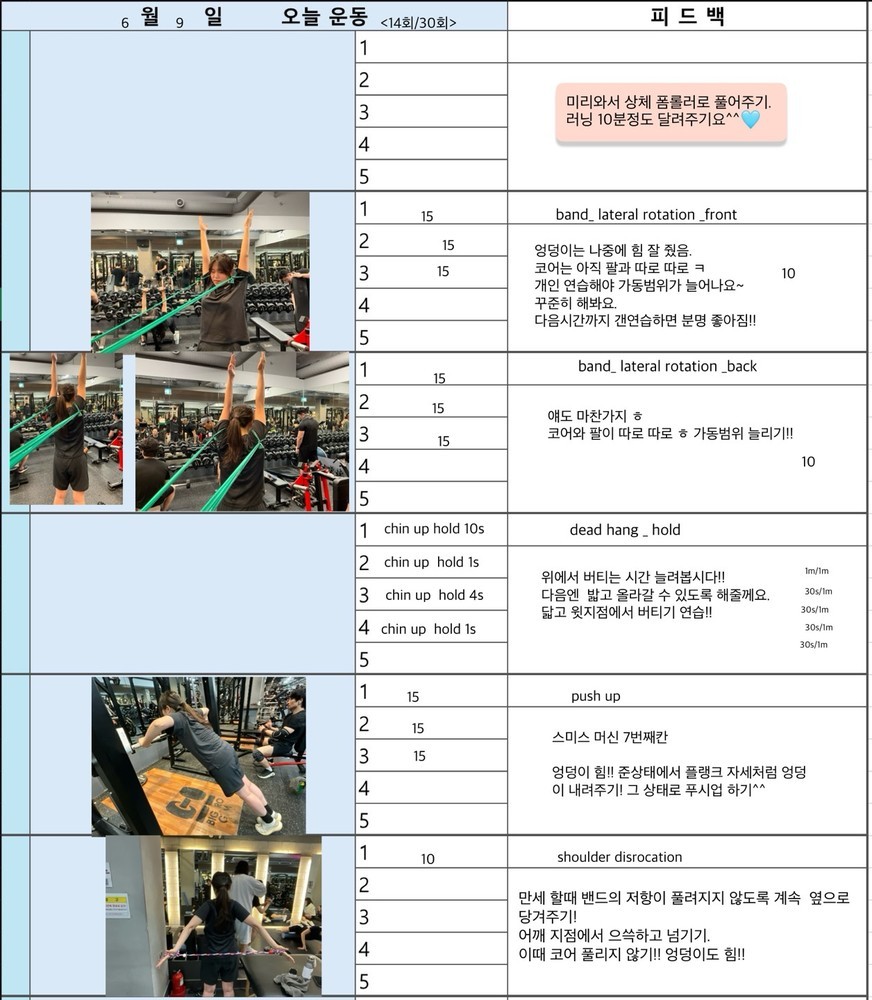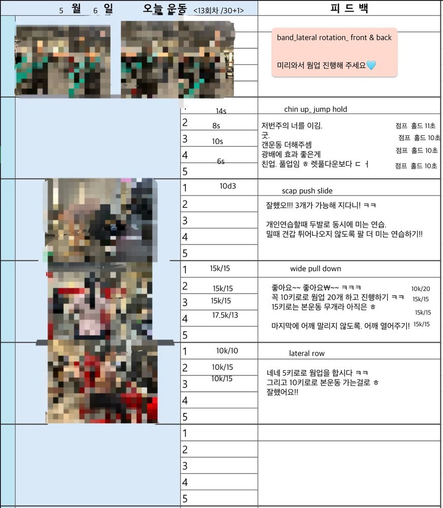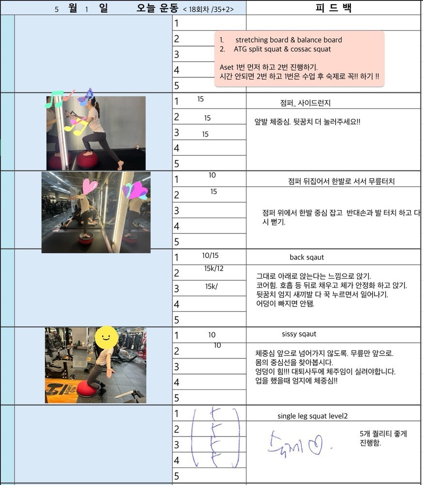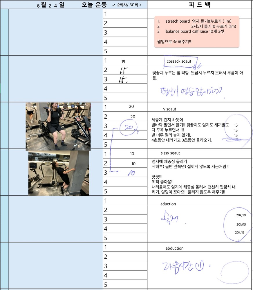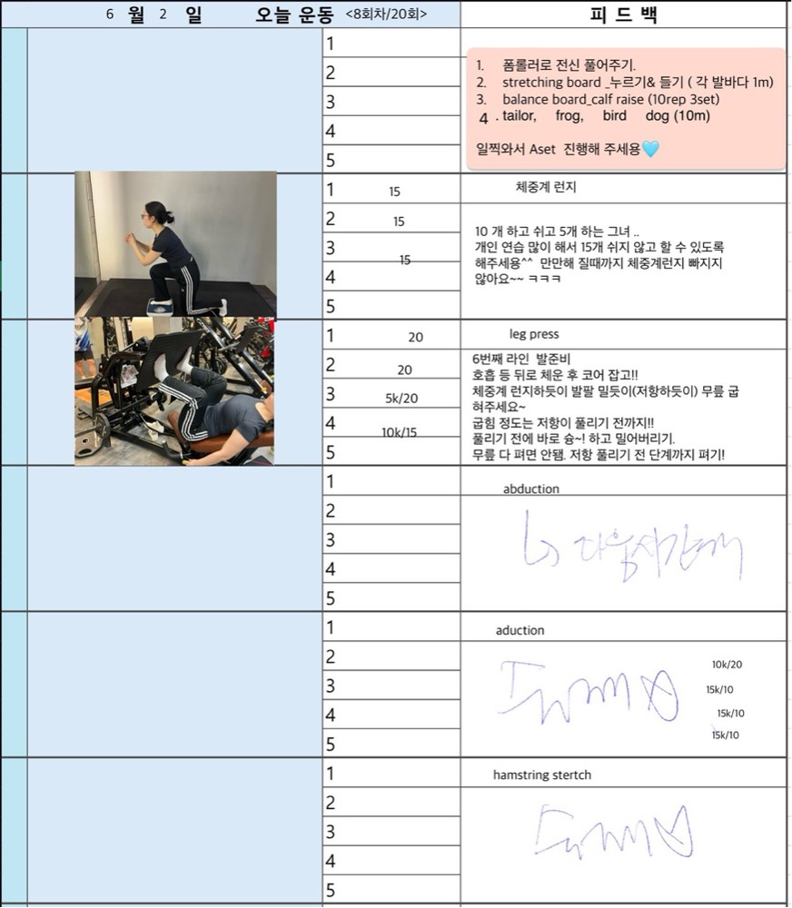 매일 운동 영상 찍어주고 운동일지 적어서 주시니까 너무 좋습니다.