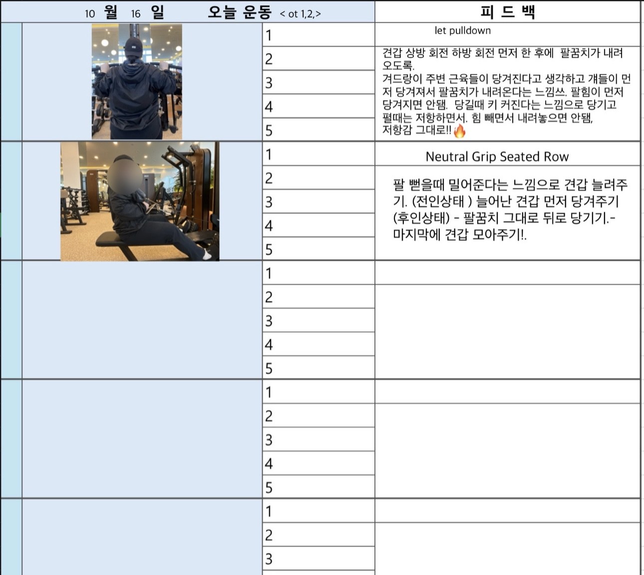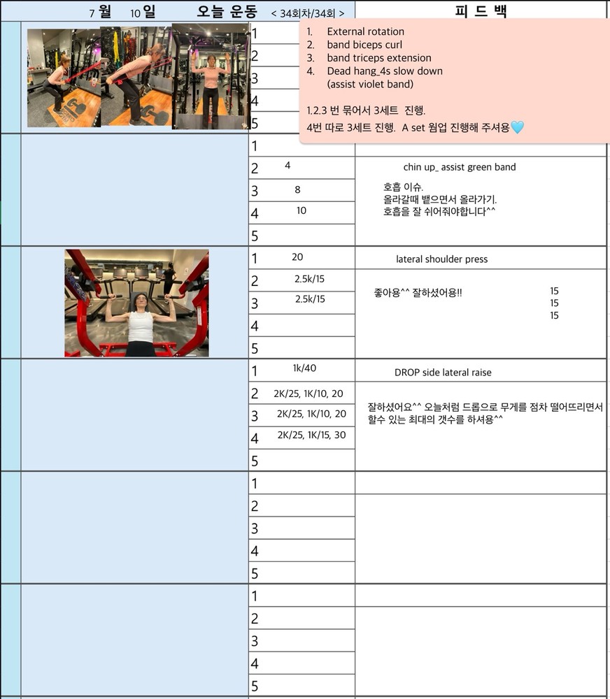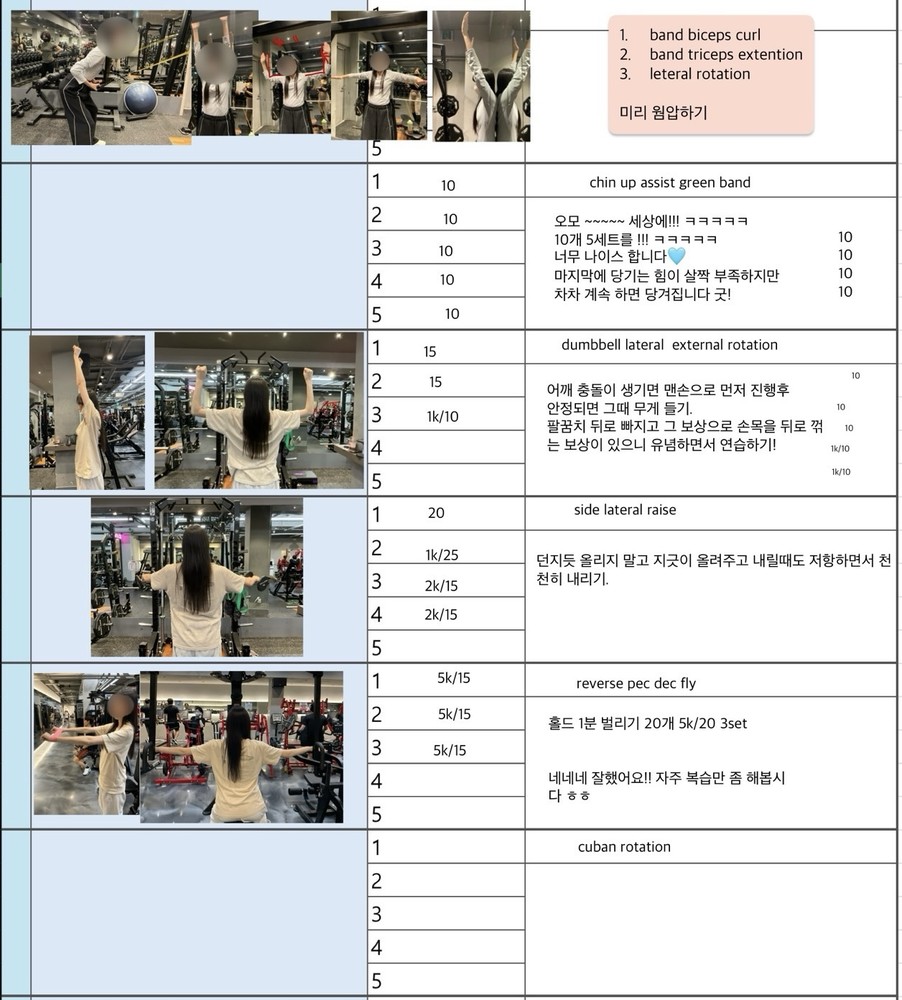 처음엔 어깨 좌우 불균형으로 리버스 펙덱플라이도 제대로 못했는데 지금은 좌우 균형 맞게 운동 수행 하시는 유정님 보면서 아주 뿌듯했답니다^^ 앞으로도 지금까지 운동했던거 처럼 운동 하시면 더 좋아지실꺼에요!!