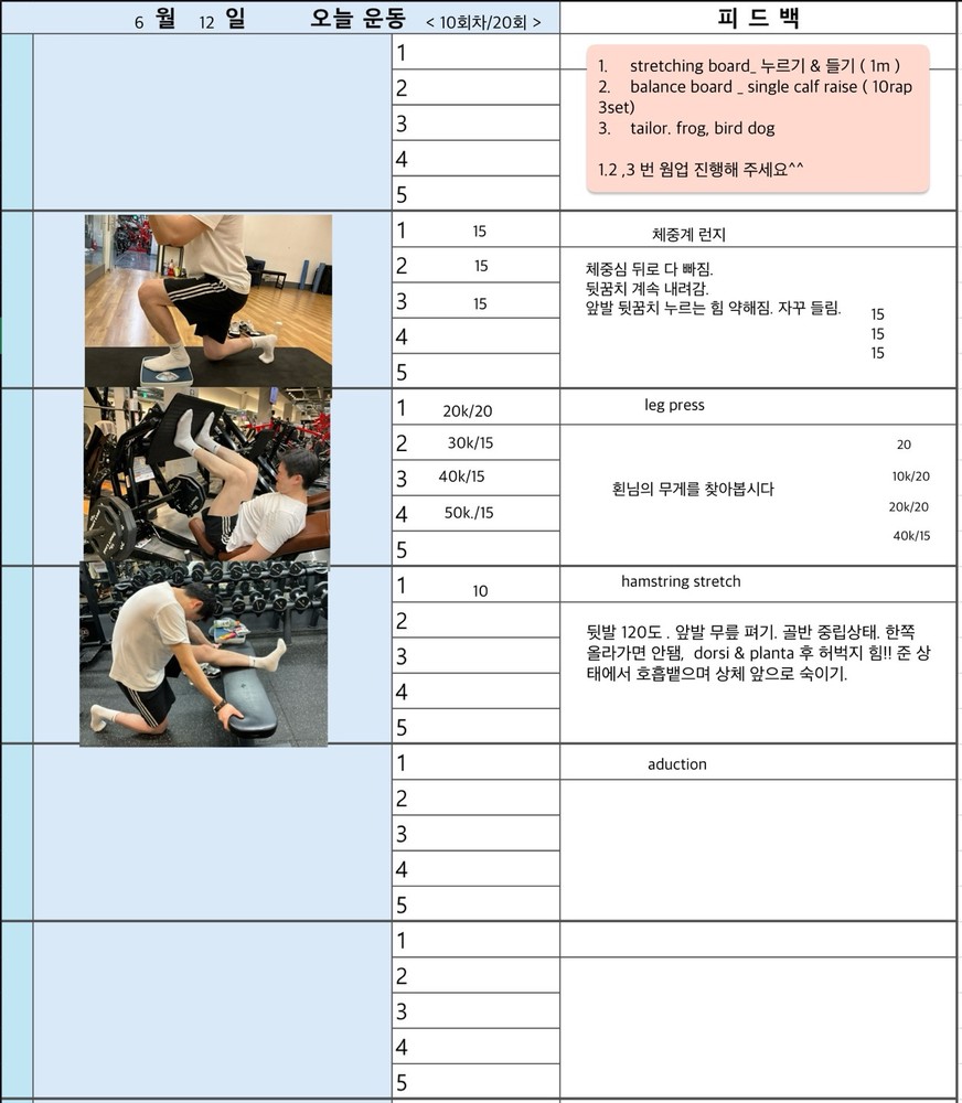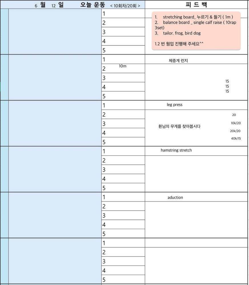 세세하고 꼼꼼히 봐주시는 쌤 덕분에 무리없이 재활운동을 하고 있어서 너무 다행입니다~~