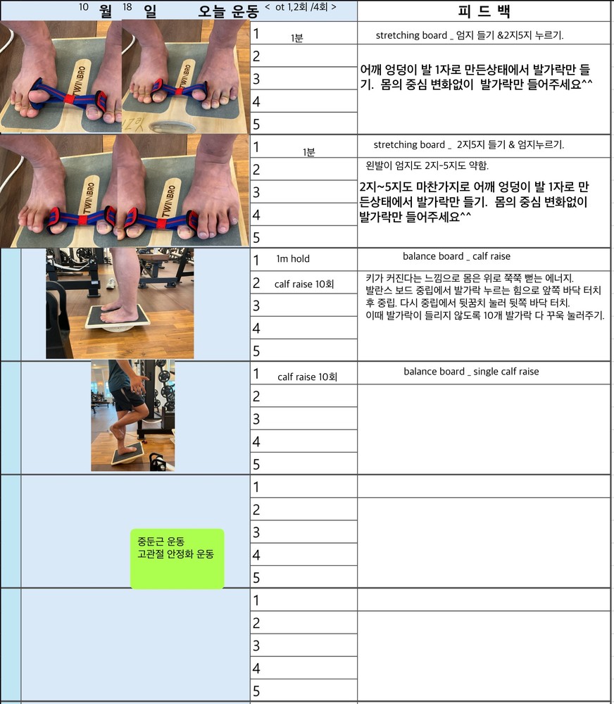 그로 인해 발, 발목등 균형감있게 근육들을 쓰지 못하고 무릎이나 다른 근육들이 무리가 갔었는데